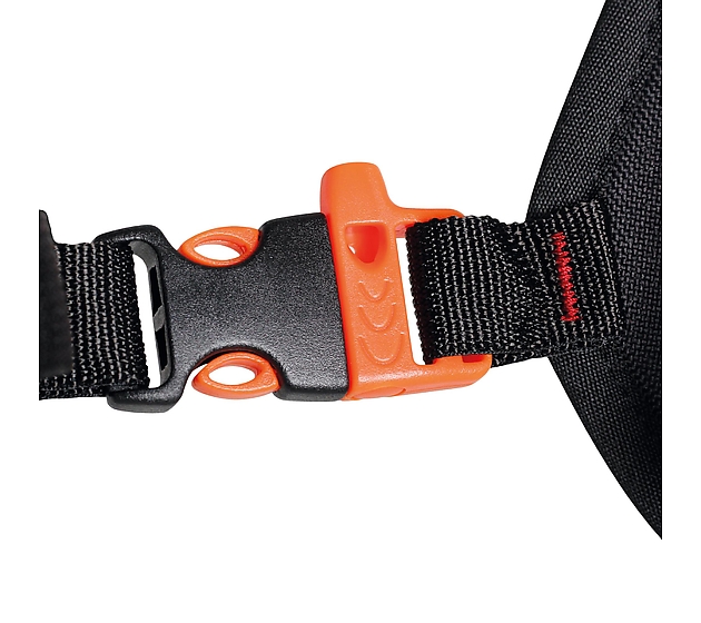 • for comfortable donning, equipped with a trident with a whistle at the front