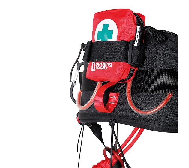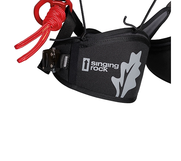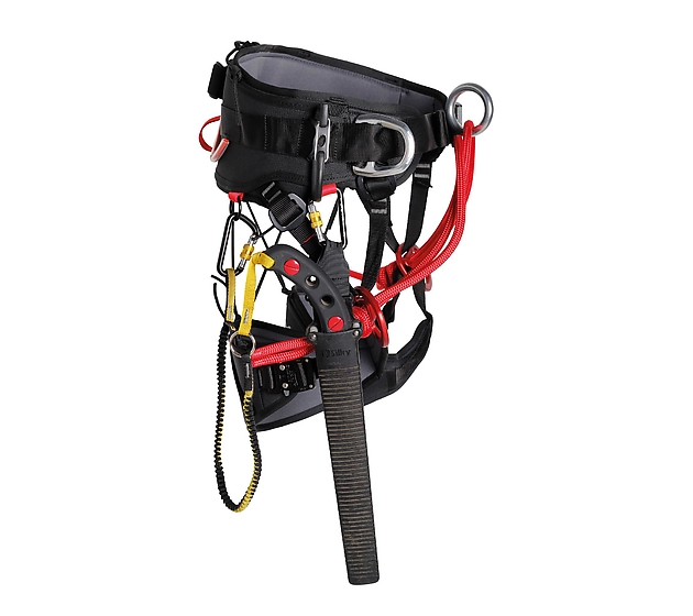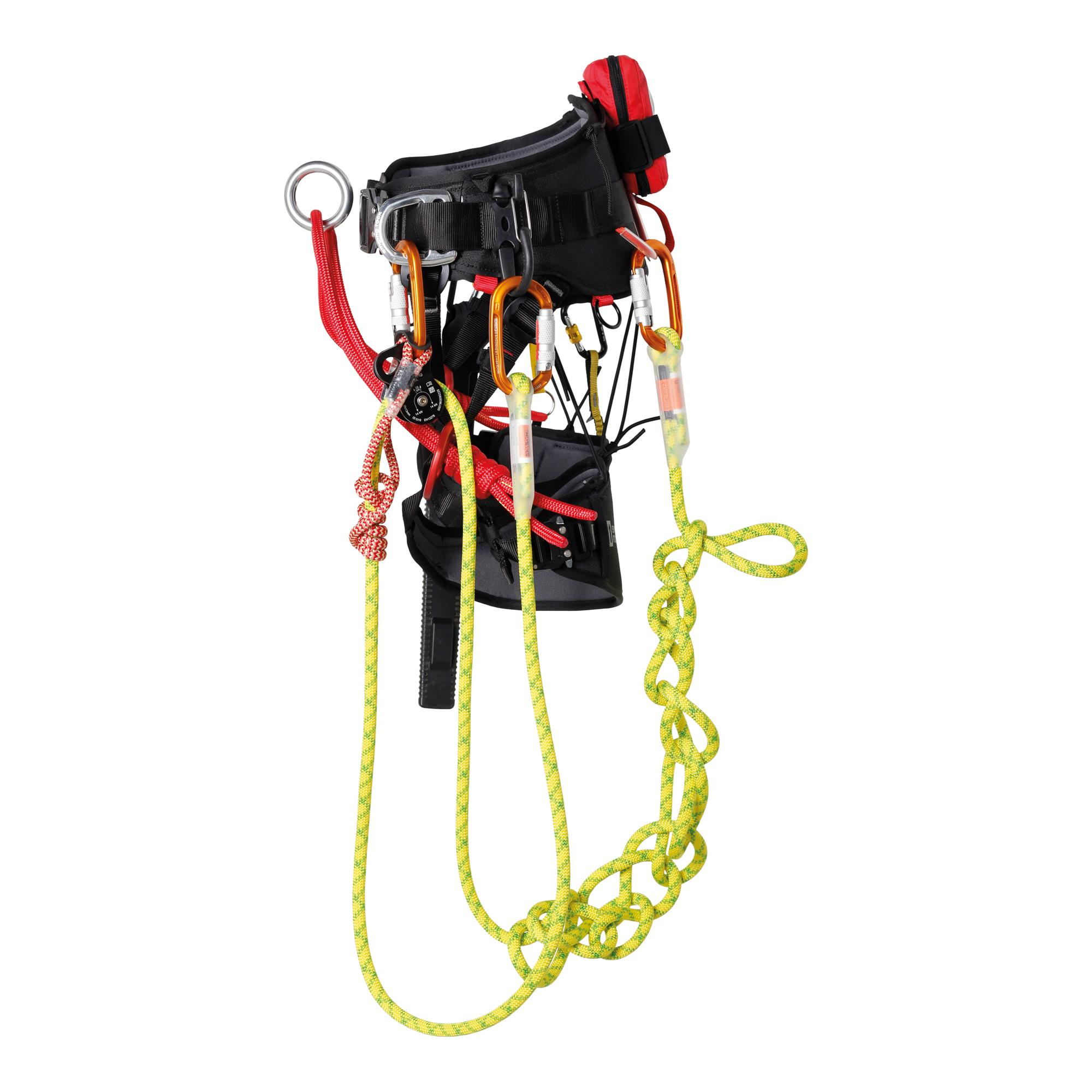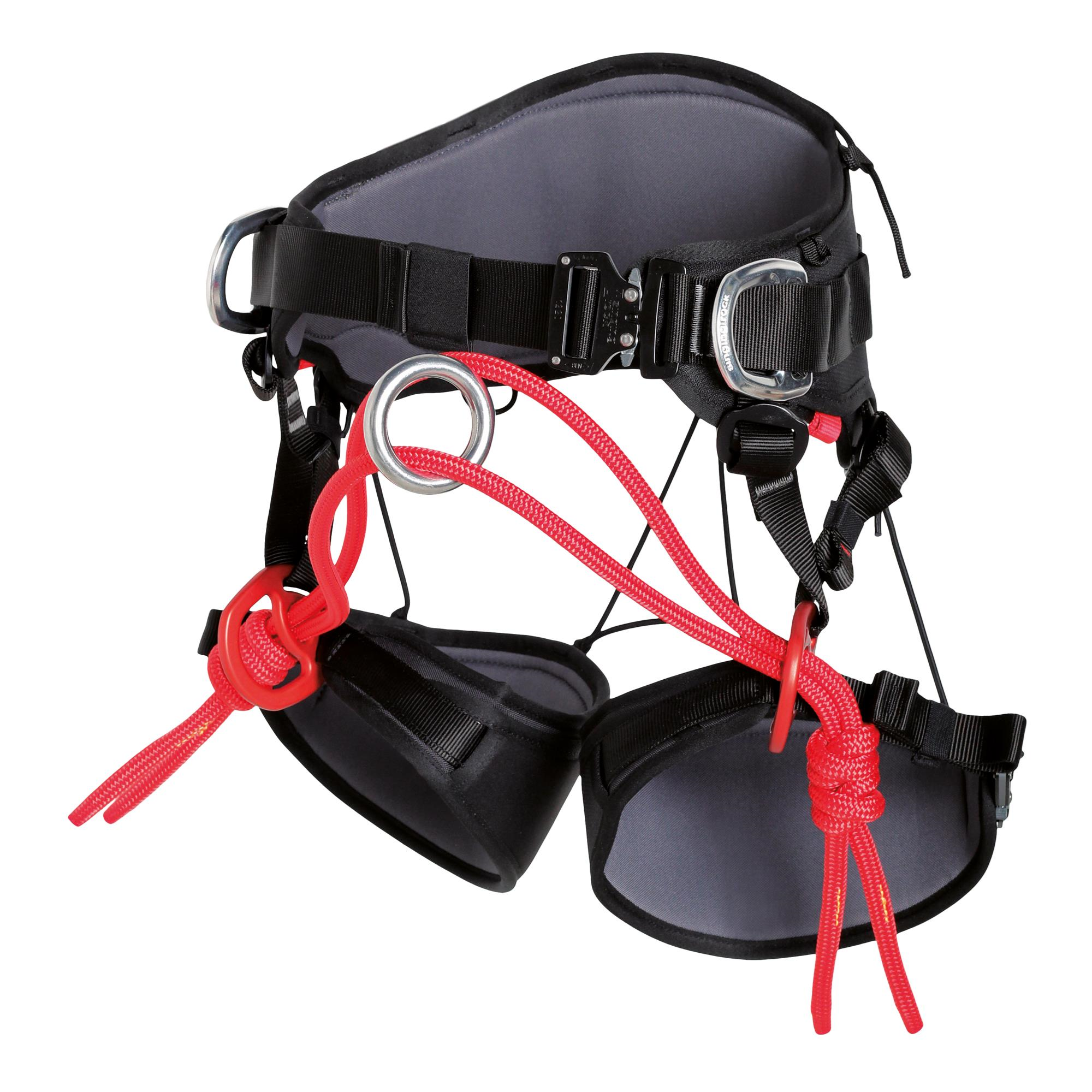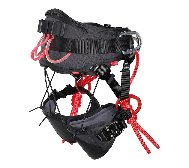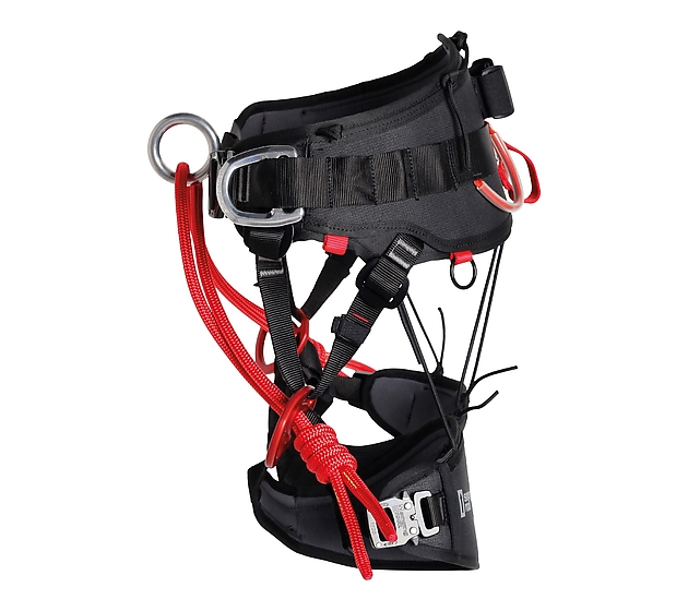 • adjustable red side D rings between the leg loops and waist belt for the attachment point, used in a pair according to EN 813 with a strength 15 kN