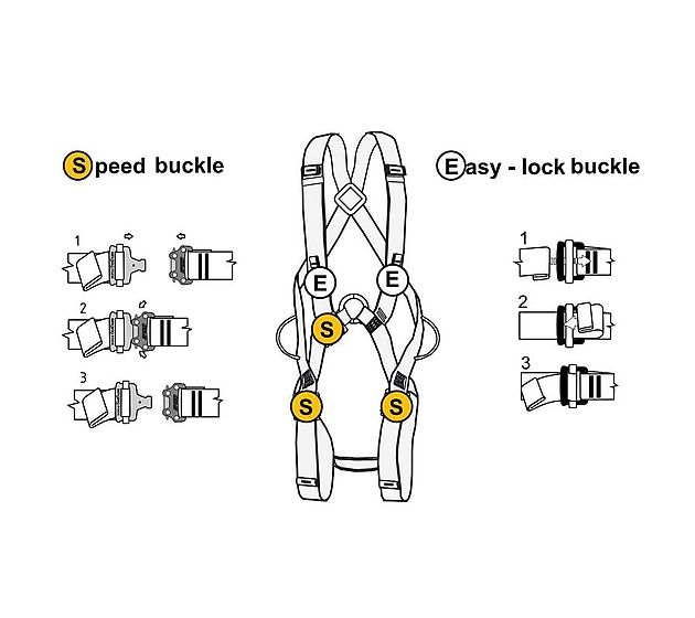 Fully adjustable fall arrest harness - with three SPEED buckles