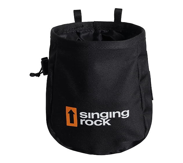 Large chalk bag with ergonomic shape and enough volume for chalking of the whole hand.