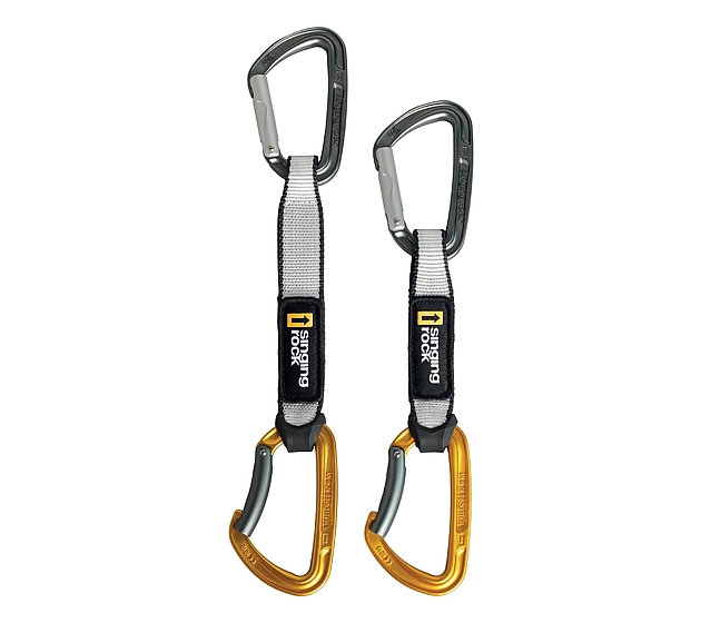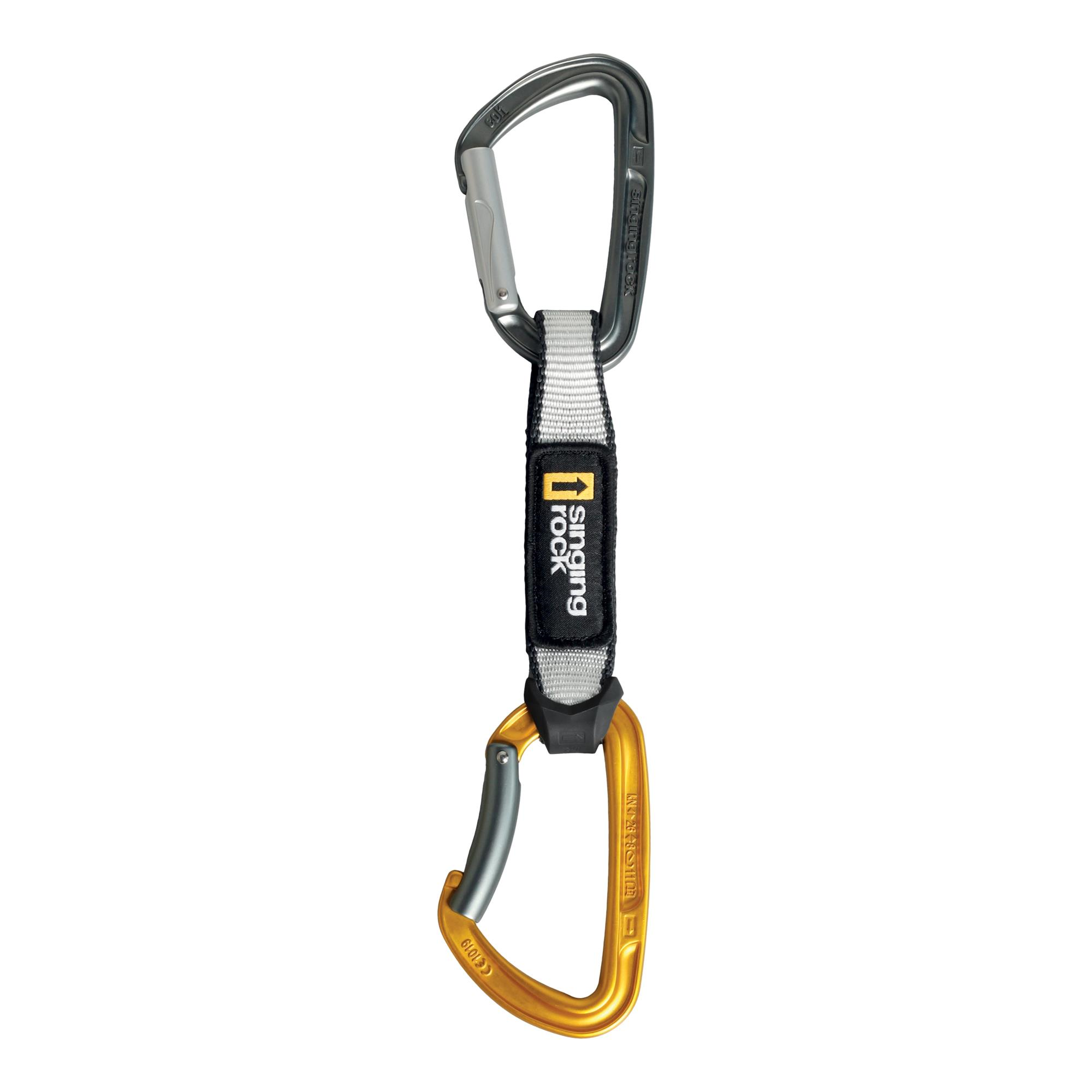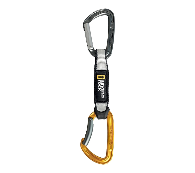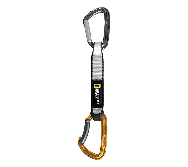 Durable full size quickdraw with solid gates and woven label to increase the SINGING ROCK logo. Intended for sport climbing routes.