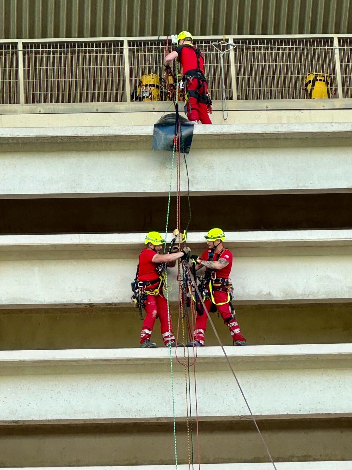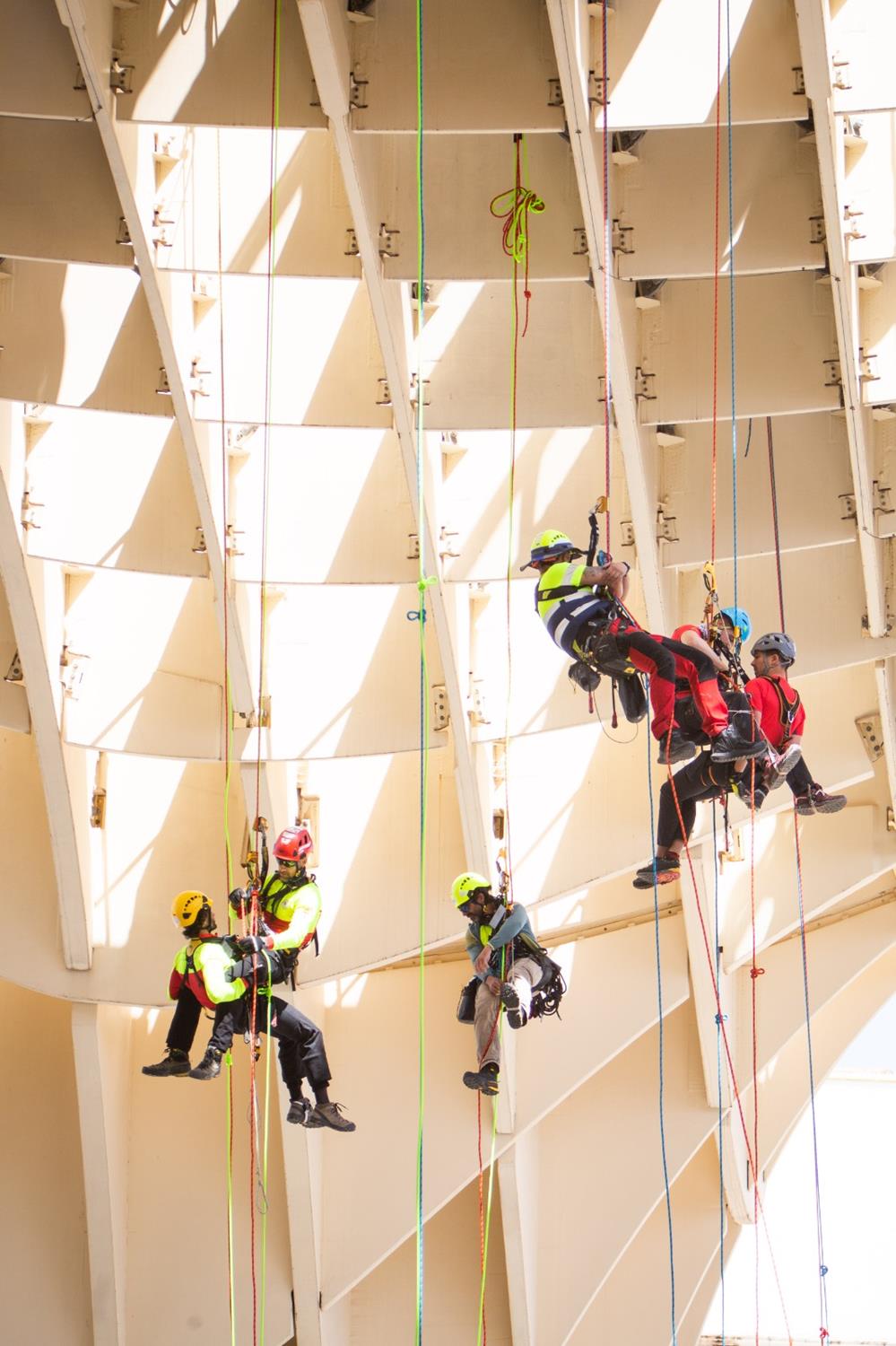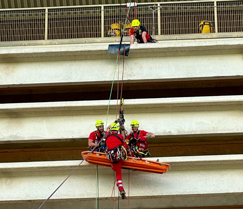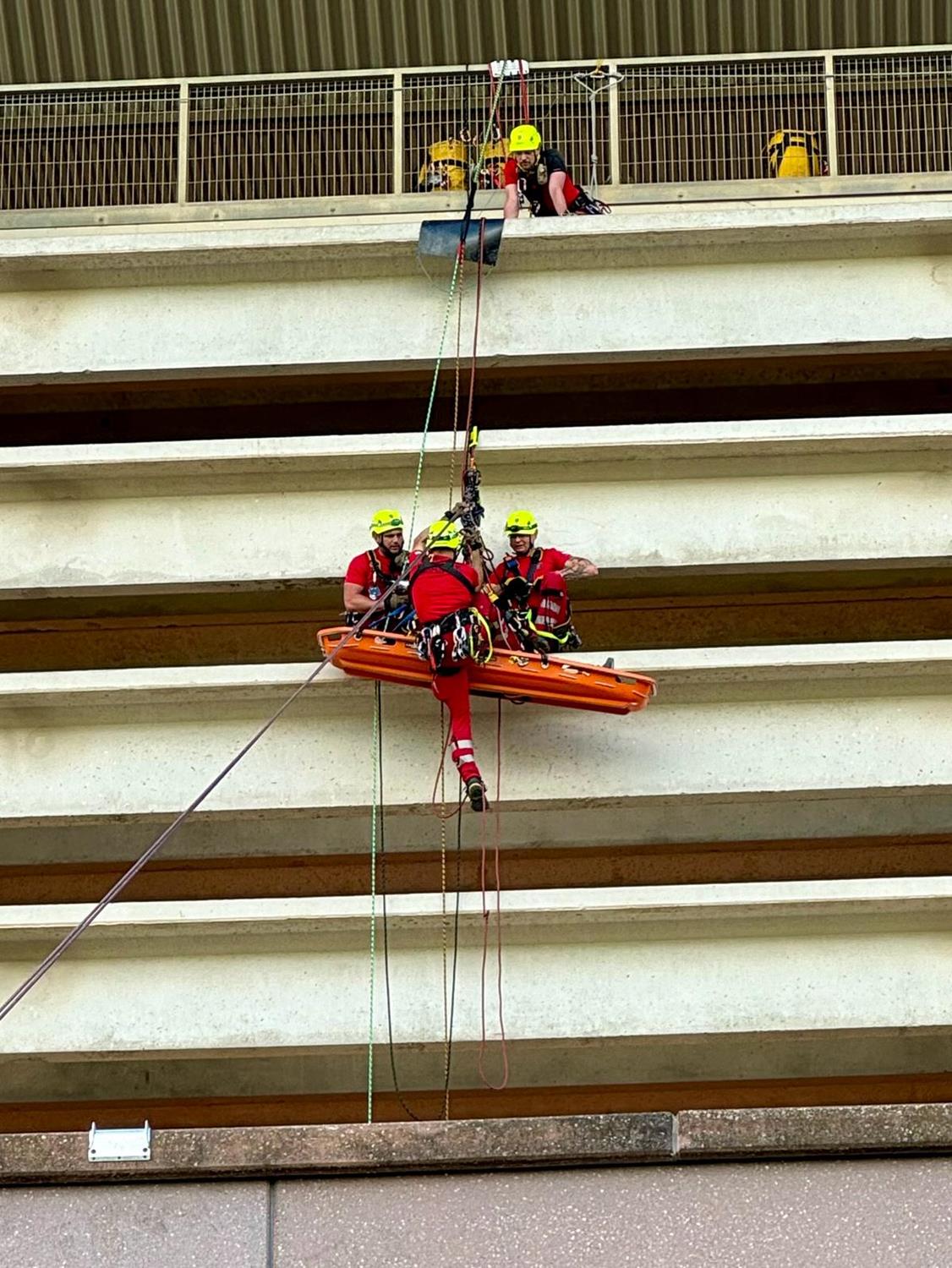 We started Saturday by hauling an injured person across the dry river to the retractable roof of a stadium and then we had to lower ourselves inside with all the equipment so that nothing was left on the roof.