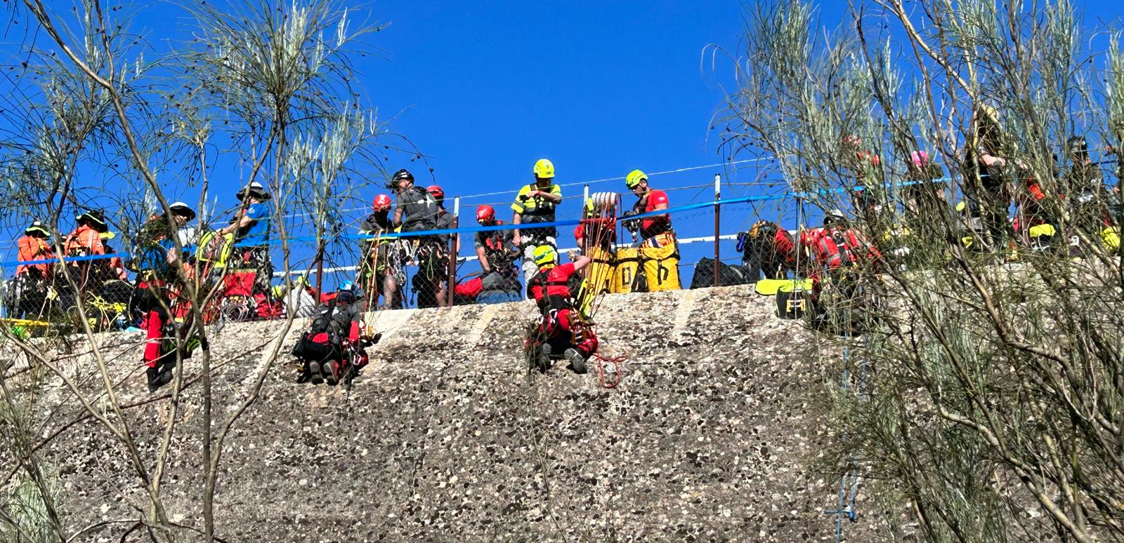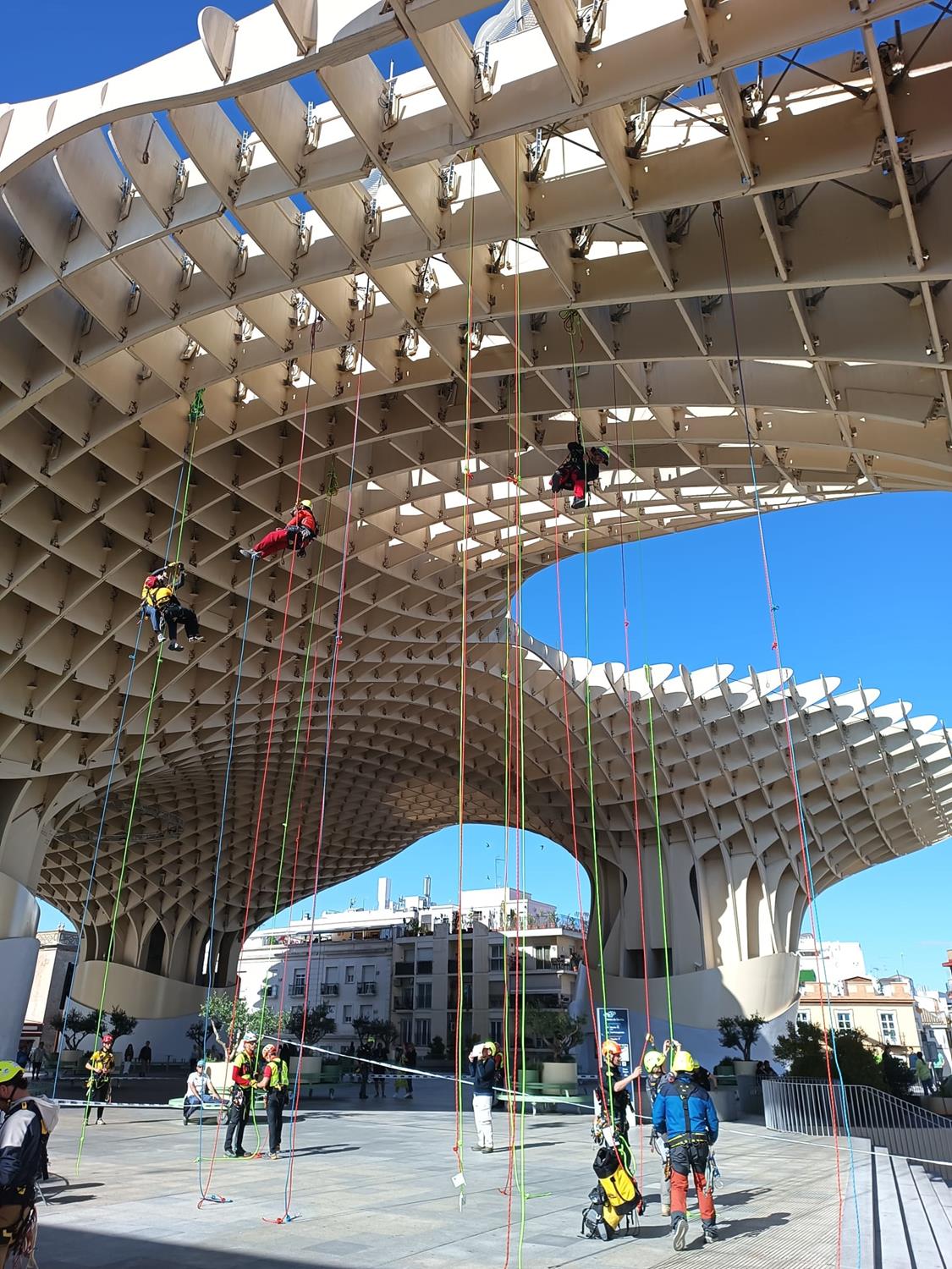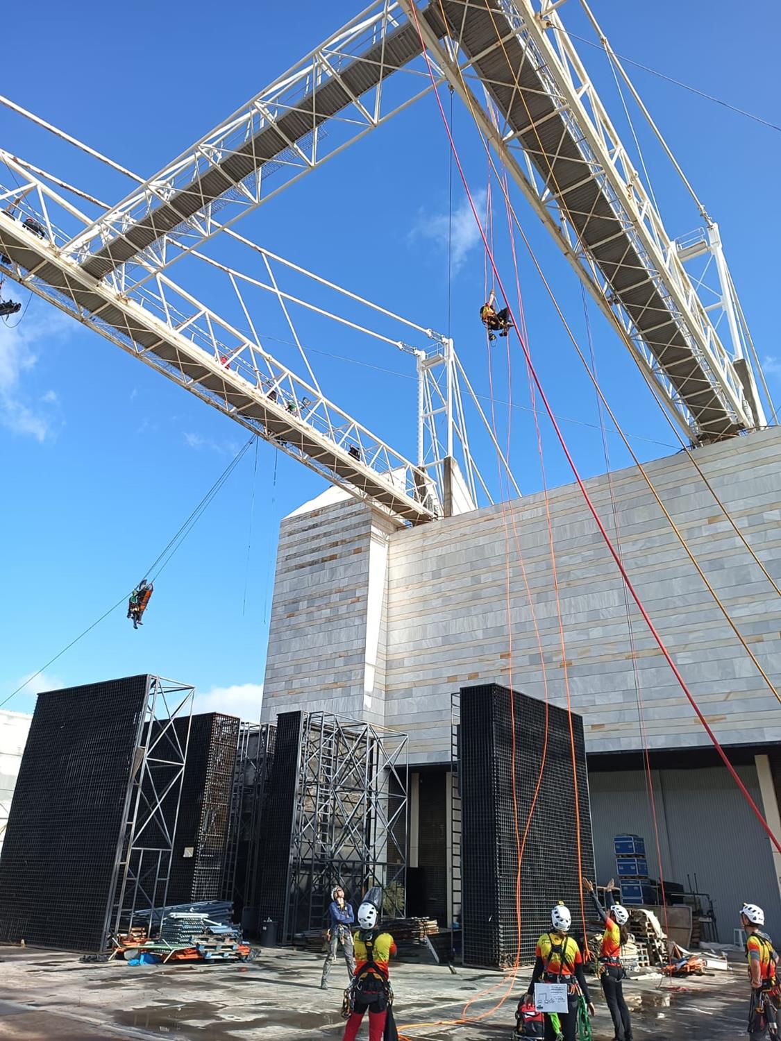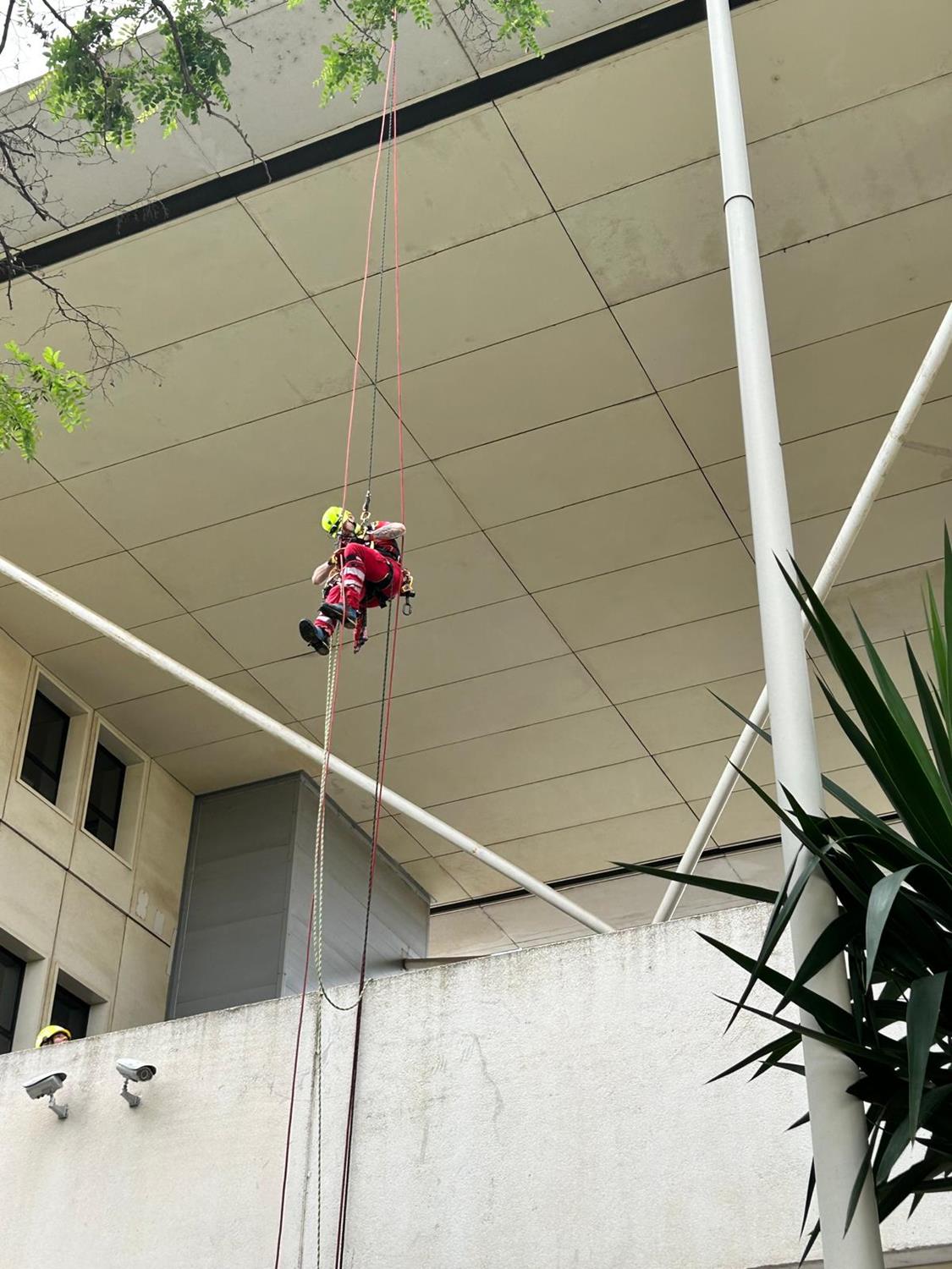 We started Saturday by hauling an injured person across the dry river to the retractable roof of a stadium and then we had to lower ourselves inside with all the equipment so that nothing was left on the roof.