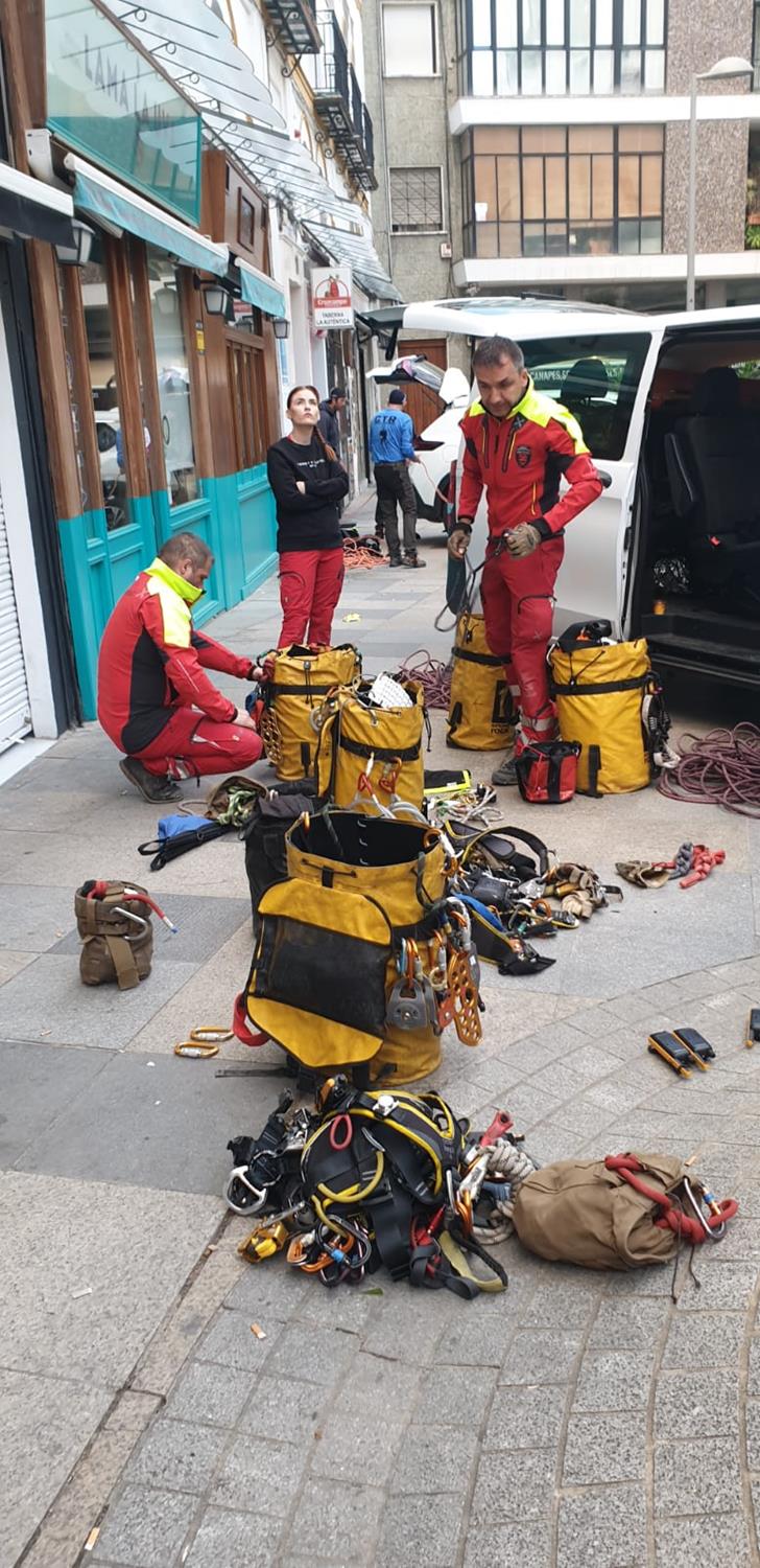 The end of Saturday belonged to a Tyrolean traverse. Hauling the injured person 15 meters and then an approximately 60-meter-long Tyrolean to transport her to the parking lot over the edge of the ground floor building.
