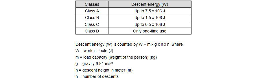 For those interested in numbers and charts there is a summarization of all the important data.As already mentioned above, both devices are certified according to EN 341:2011. But while EvaQ is ranked as a B class, EvaQ HUB is an A class device. The class of the device refers to a descent energy the device is able to absorb (see the chart below).
