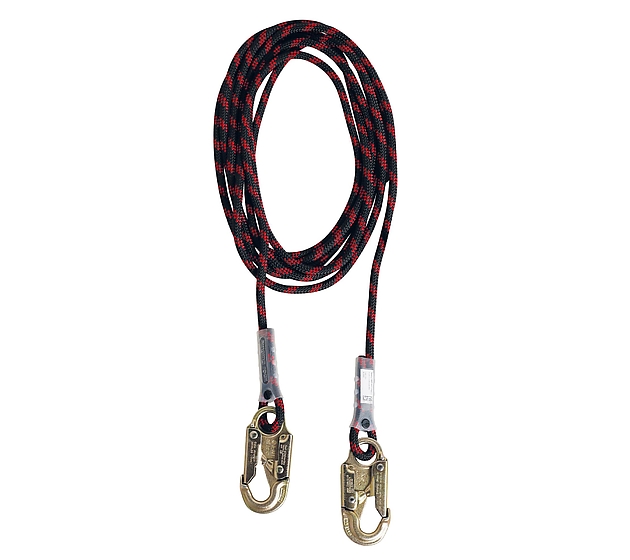 • both ends of the rope are equipped with a stitched eye and a steel double trigger automatic locking connector with a gate opening of 21 mm