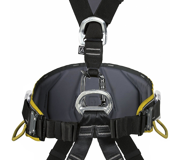 • anatomic leg loops and waist belt are covered with a strong PES fabric providing high abrasion resistance