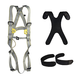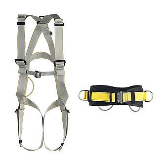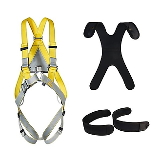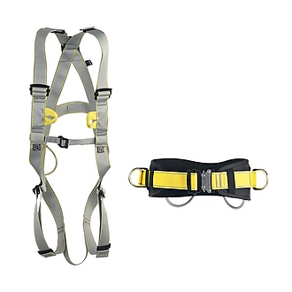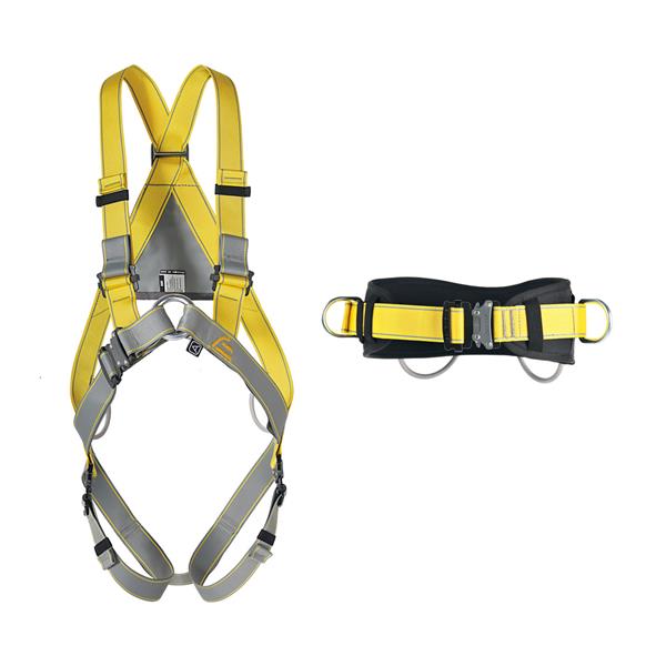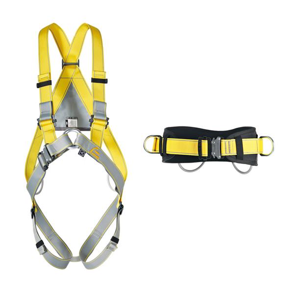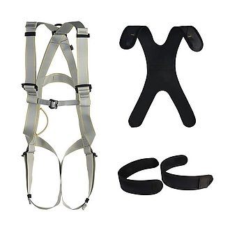 Harnesses Basic Light, Basic, Body II Standard and Body II Speed with rear dorsal and/or front sternum attachment points according to EN 361 can be extended by EN 358 Pole II belt with the SPEED buckle.