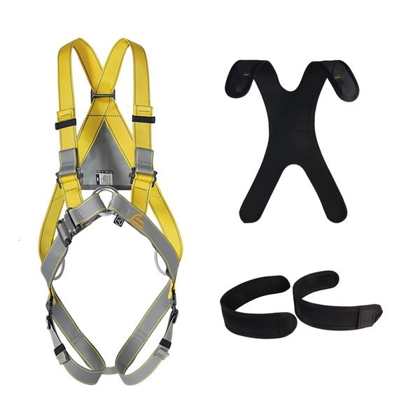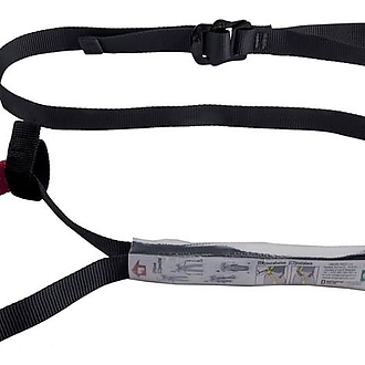 In case of a fall, an auxiliary Suspension Trauma Safety Strap will help to reduce pressure to the femoral veins while suspended. The strap helps to exclude typical symptoms as pallor, sweating, shortness of breath, blurred vision, dizziness, nausea, hypotension, numbness of the legs and fainting, which reduce a possibility of a death due to oxygen deprivation while waiting for a rescue operation.