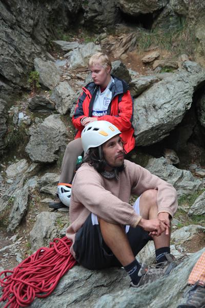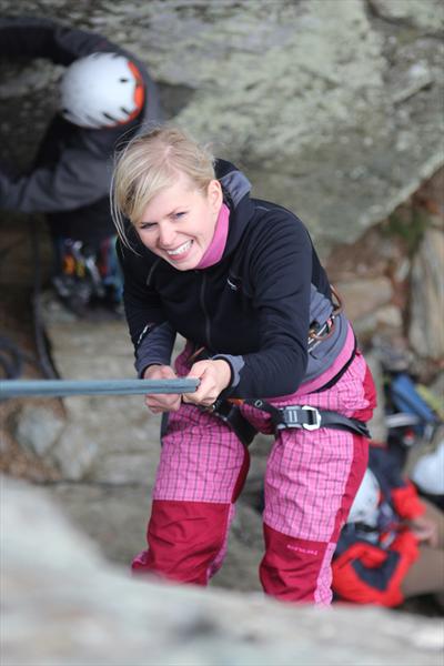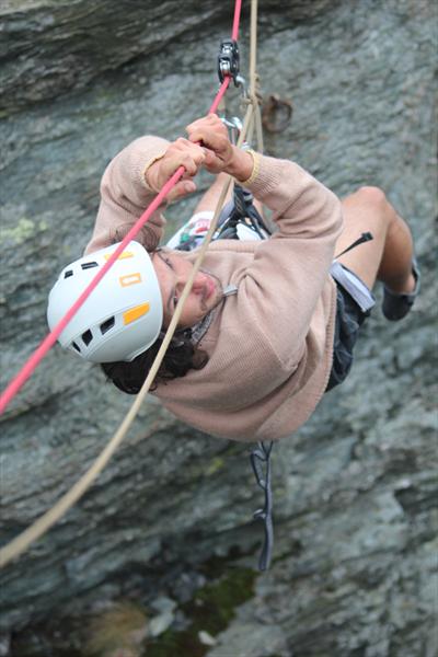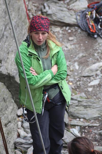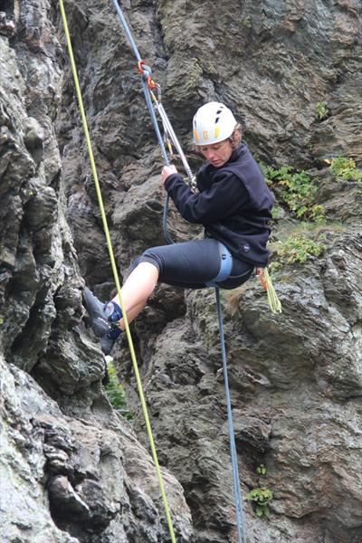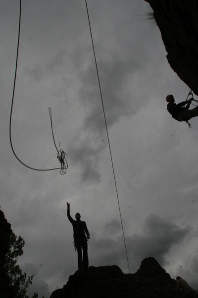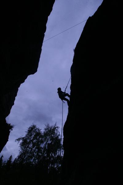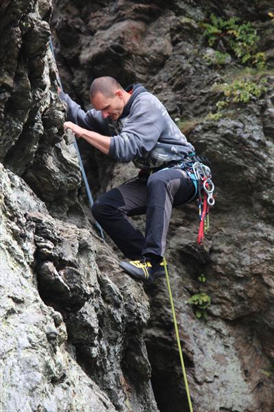 On Saturday, we settled in the square between the second and the third tower, where we prepared several top rope routes. Those who wanted could try rapelling and prusik climbing and most importantly, the biggest attraction was tyrolean traverse from the third to the second tower. The weather was nice but the unpleasant wind tested our equipment for cold. In the evening, thoroughly frozen, we again moved to the cozy pub where Víťa and Tonda projected something from the life of mountain guides.