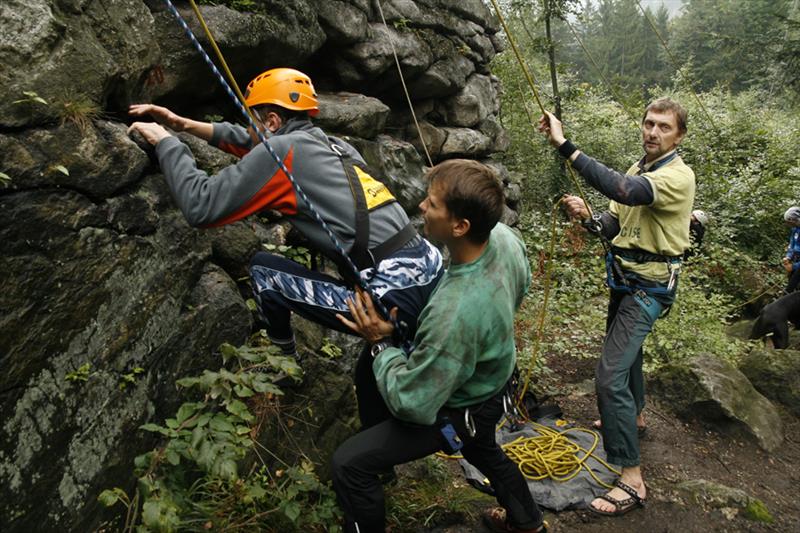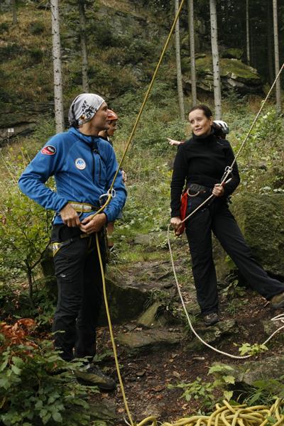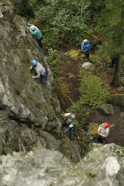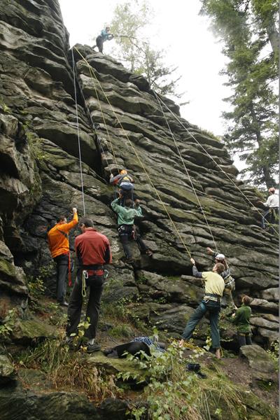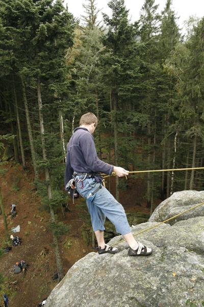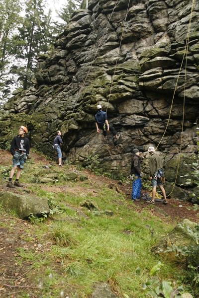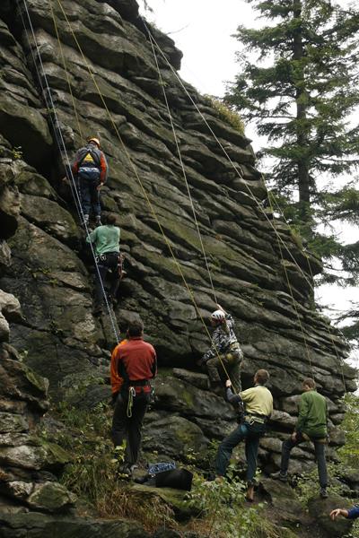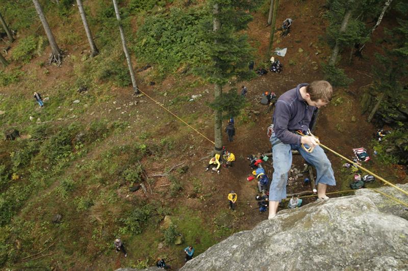 Saturday: climbing at Čertovy kameny area, UIAGM guide metodology, belaying, rope ascent etc.