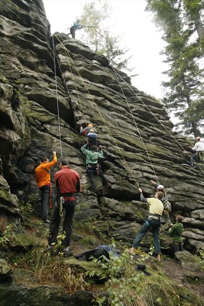 Sunday: climbing at Čtyři palice area, rescue techniques for climbers etc.