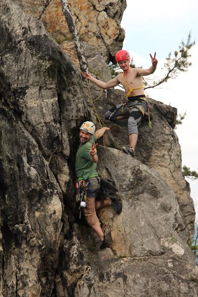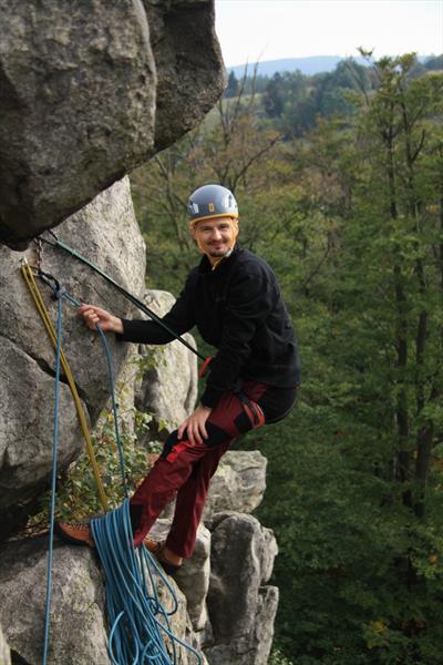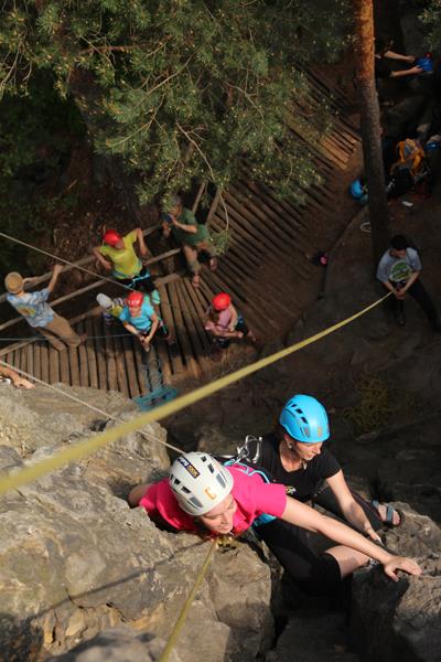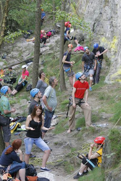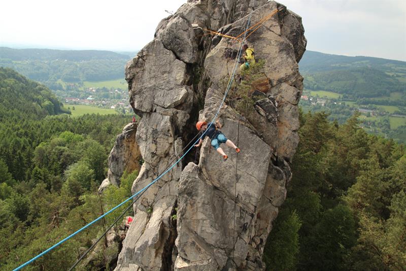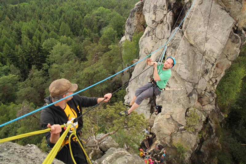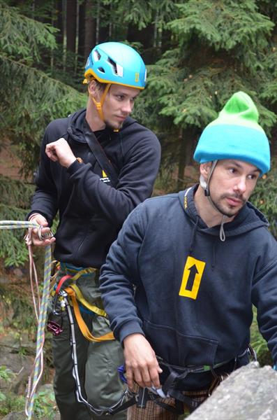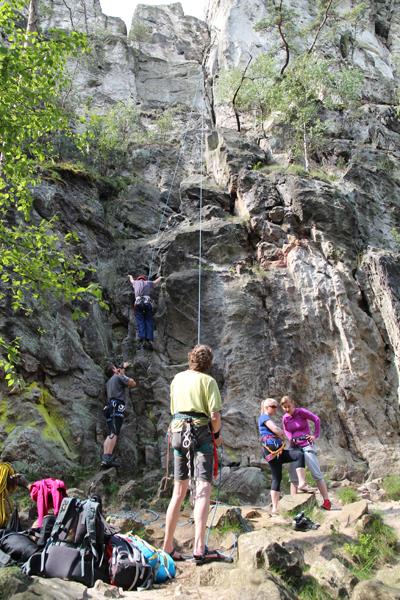 Saturday: climbing at the Suché skály area, UIAGM guide methodology, belaying, rope ascent etc.