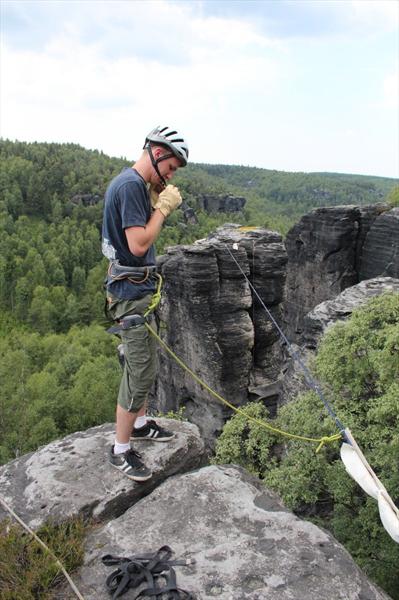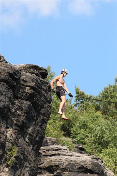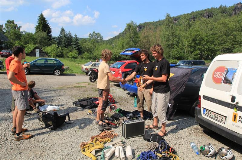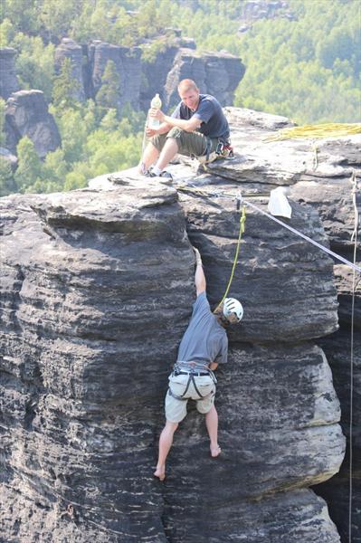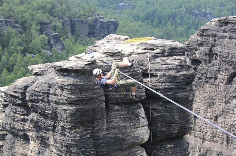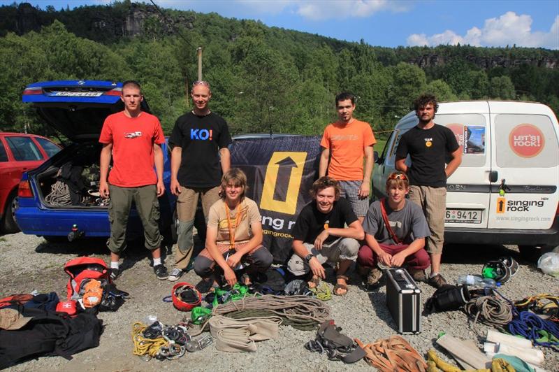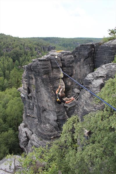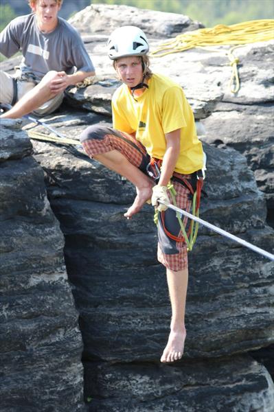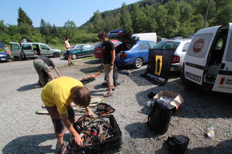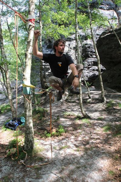 Saturday 9th June 2012 – meeting at 10 a.m. in a front of the pub Pod Cisarem, leaving to the rock area near by.Morning – pulling out the training slacklines (max. height 3 m), training to get up the slackline using the highline daisy chain. Another training slackline (max. height 1m) – training to get up the slackline by push-up.