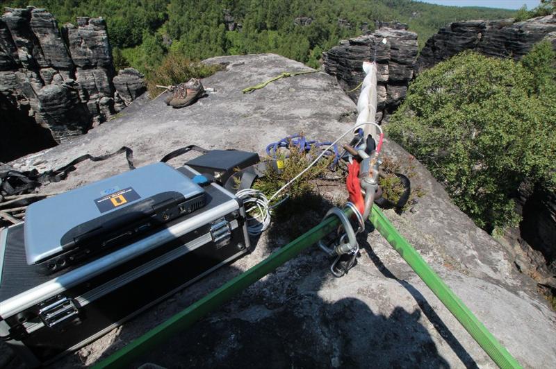 Afternoon – pulling out the highline – tech tips, measuring the tension by tenzometer, training