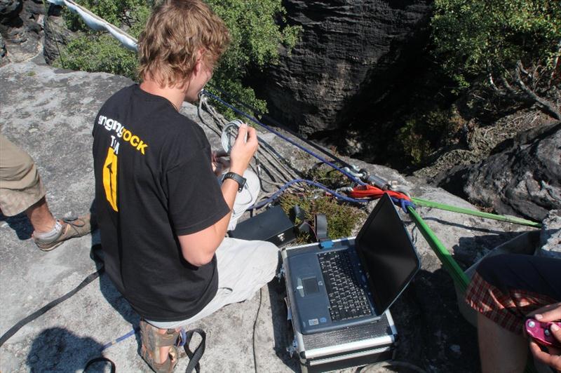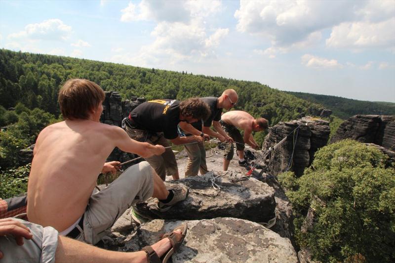 Afternoon – pulling out the highline – tech tips, measuring the tension by tenzometer, training
