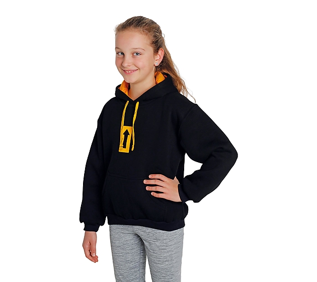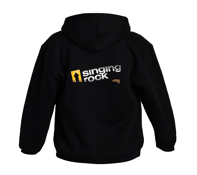 Hoody for boys and girls with the SINGING ROCK logo and distinctive arrow on the front.