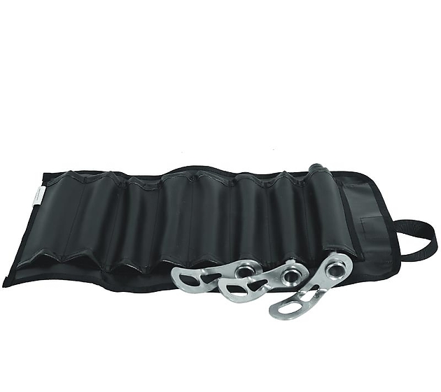 Lightweight and convenient roll-up bag to protect and organize your ice screws