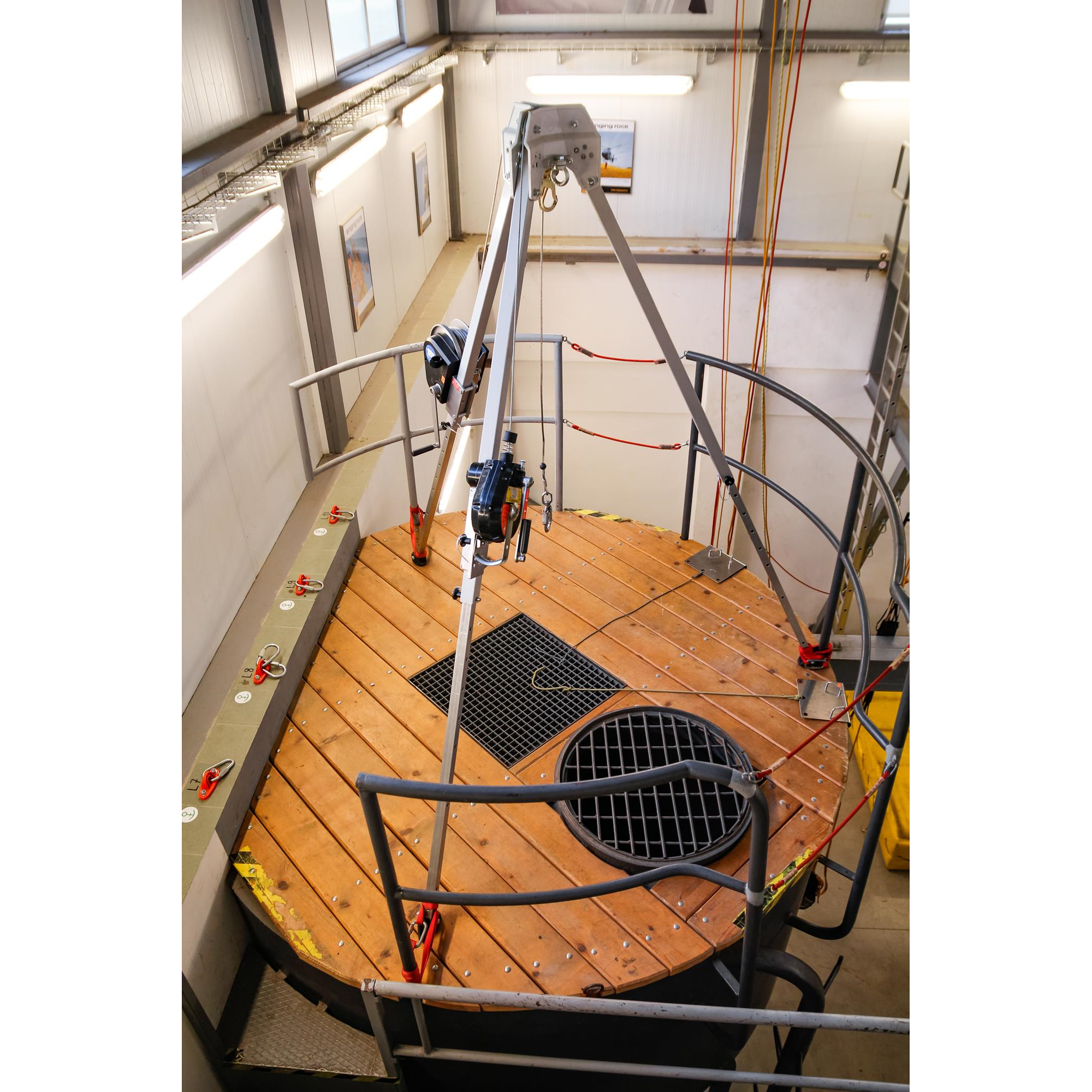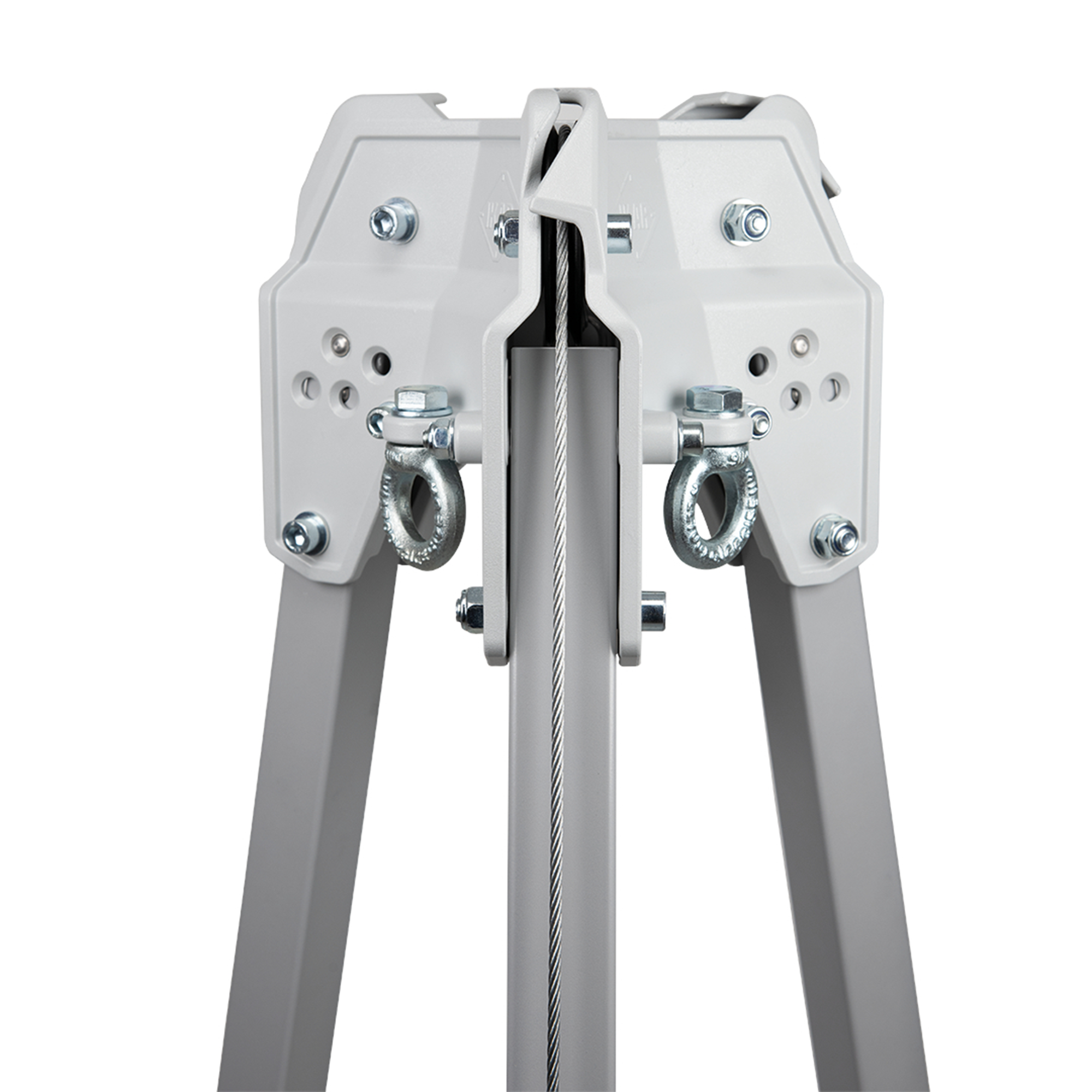 Portable tripod with adjustable locking legs and 3 intergated pullies. Head construction allows a variety of leg angles and a safety-chain-free design. Ideal for economical compliance in many basic confined space, fall arrest applications and rescue.