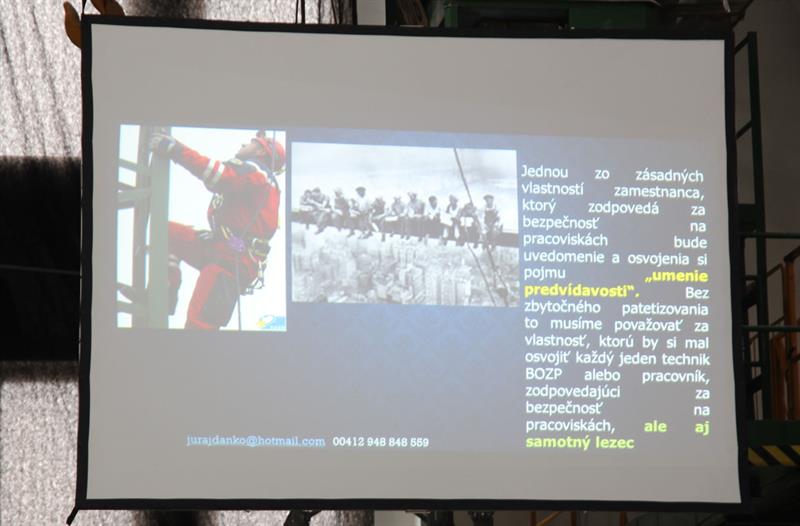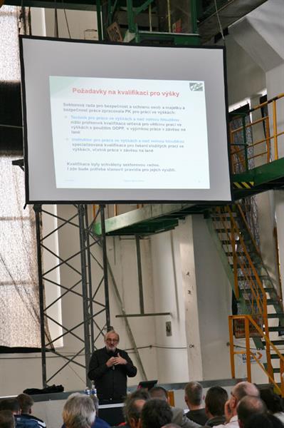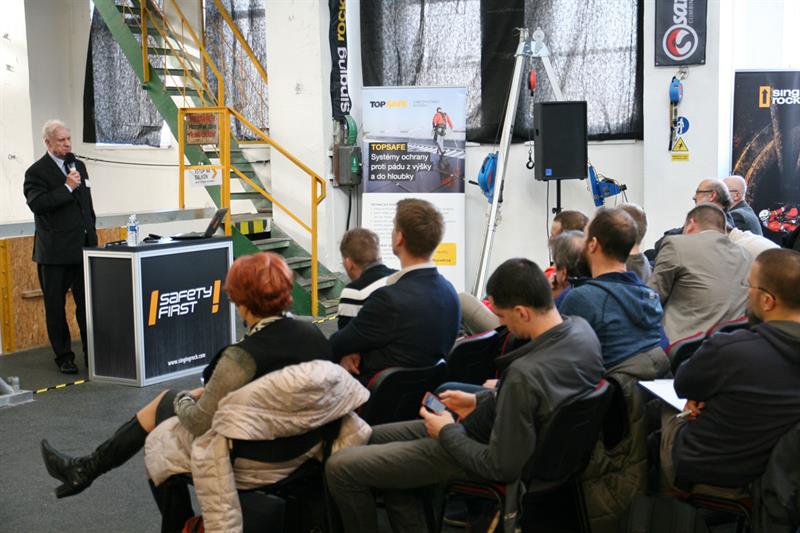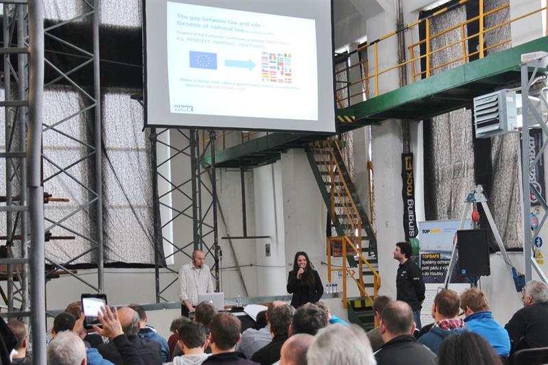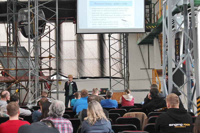 During the two days more than ten specialists from Czechia, Slovakia, Austria and Germany lectured to about a hundred of participants. In their contributions they covered topics such as The Role and Status of the Labour Inspection Control Authorities in Ensuring the OHS of Work at Height in the Czech Republic, The OHS Legislation for Work at Height in Slovakia and Austria, Introduction and Results of the EPCRA Research (the European Professional Certification for Rope Access) or the Practical Use of the Fall Arrest Systems and Scaffolding.