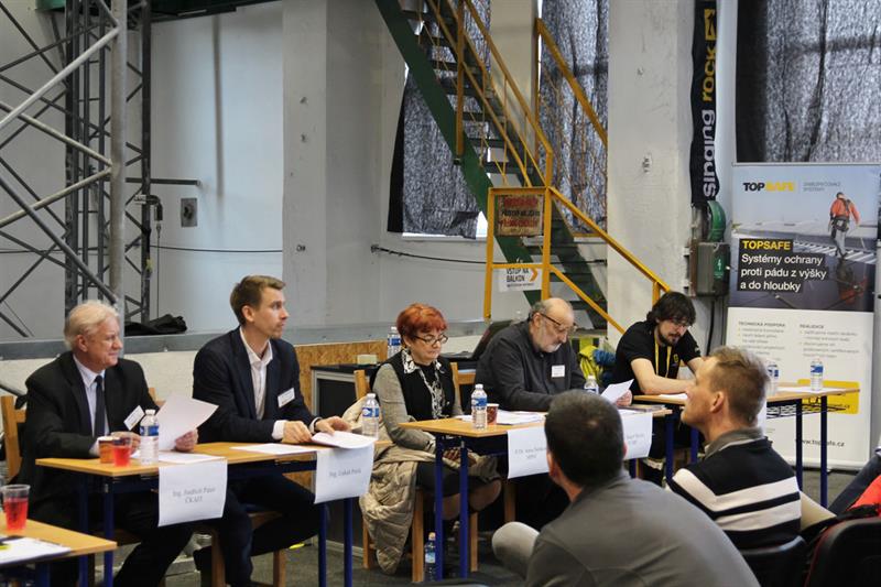 The moderated discussion, which was also part of the programme, was very well received. The representatives of the Ministry of Labour and Social Affairs, The Occupational Safety Research Institute, Czech Chamber of Chartered Engineers and Technicians, Singing Rock and a specialist lecturer who is an experienced inspector of the RLI (Regional Labour Inspectorate) answered the questions submitted by the participants of the Symposium in advance, as well as the questions by the audience which arised spontaneously during the discussion.