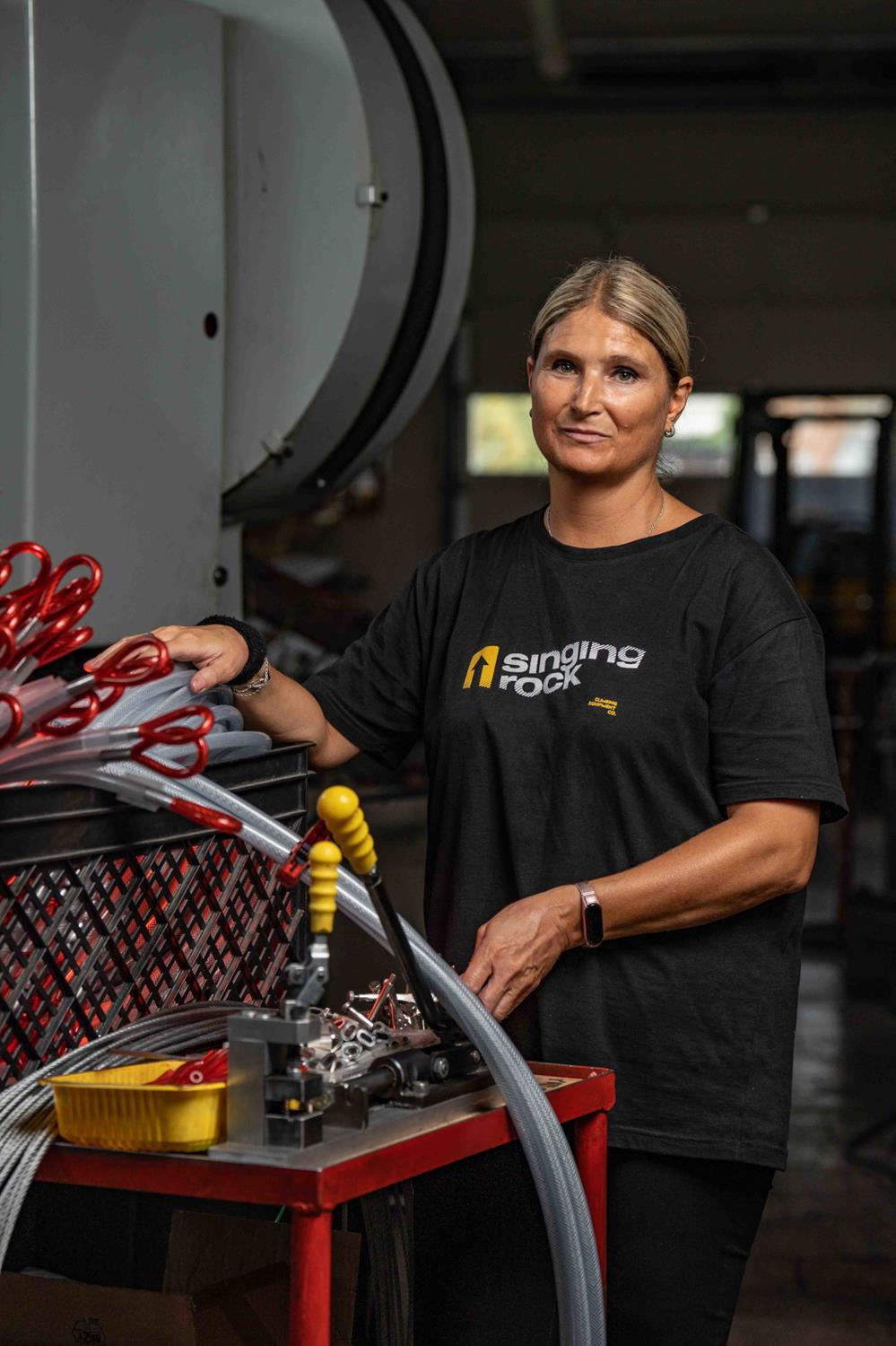 Our series of portraits of people from Singing Rock continues with four fellow workers from our metal fabrication plant in Sudkov. Thanks to them we can offer the world first-class crampons and ice axes, durable steel lanyards or reliable rings and hangers for bolting climbing routes.Iveta Hélová