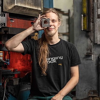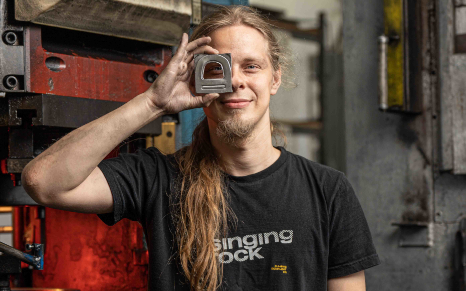 A newcomer in our metal fabrication plant in Sudkov, he has only been with us for a year and a half. Milan got to know the work in an authority, in an office and in workshops in larger companies but he settled in our manufactory where the main theme is climbing gear. He does a lot of that "black" work like locksmithing and blacksmithing. For example, he bends rings or hanger plates by hand - just try it!