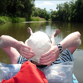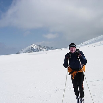 With my friends on a canoe trip, in a pub or at cross country skis on a full day trip.