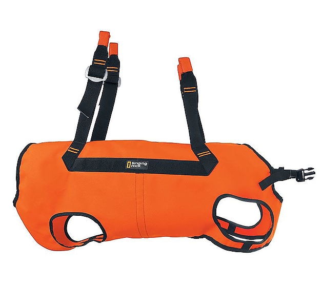 Dog harness intended for transport of a dog from a helicopter and the like.