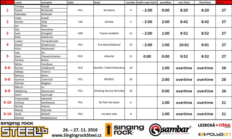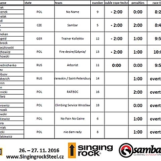 The international rope access competition Singing Rock STEEL is finished. The ninth edition of this event happened on 26th and 27th November 2016 in Kladno, Czech Republic. More and more participants come every year and this year there were only 13 Czech competitors out of 73, but they still managed to get to the medal position in the team competition.