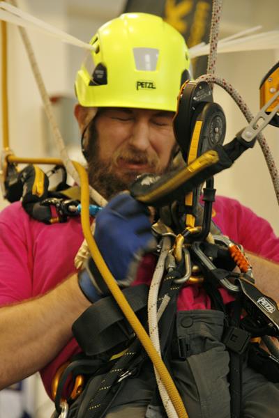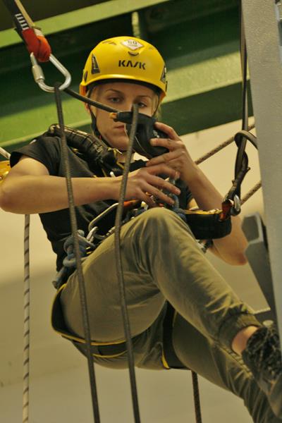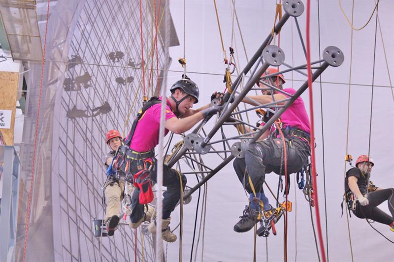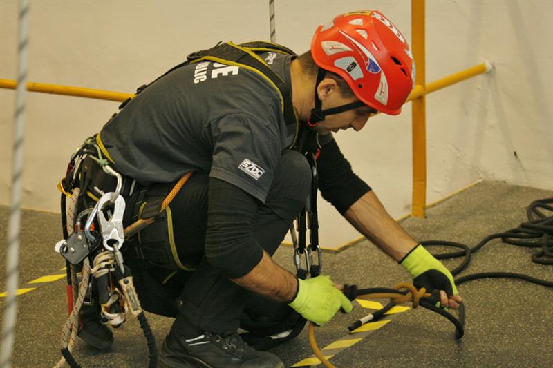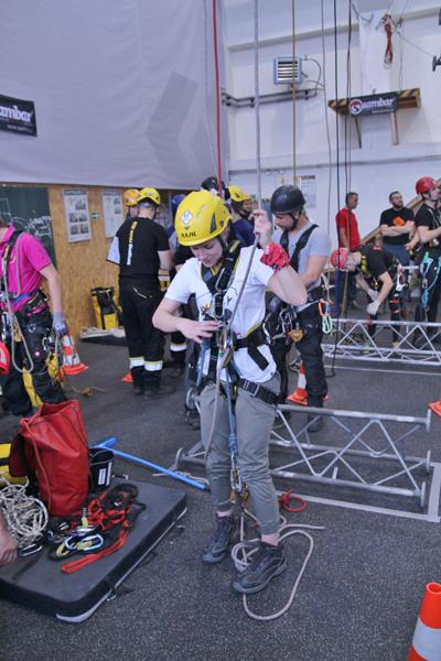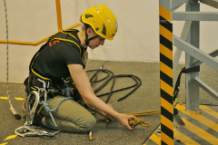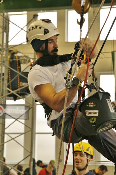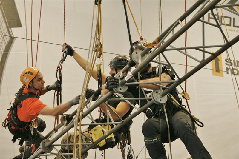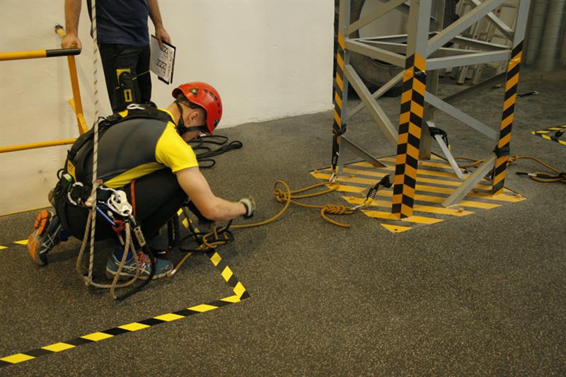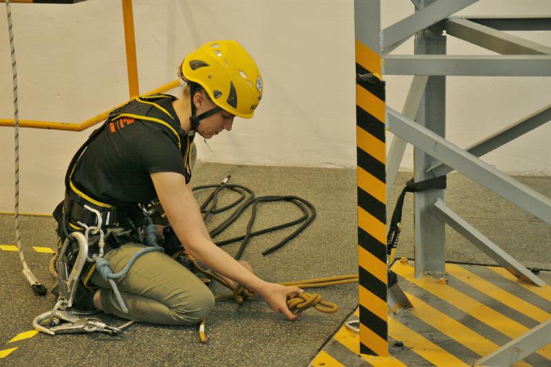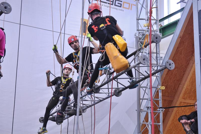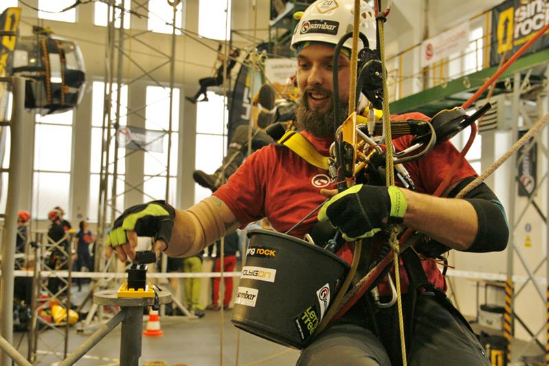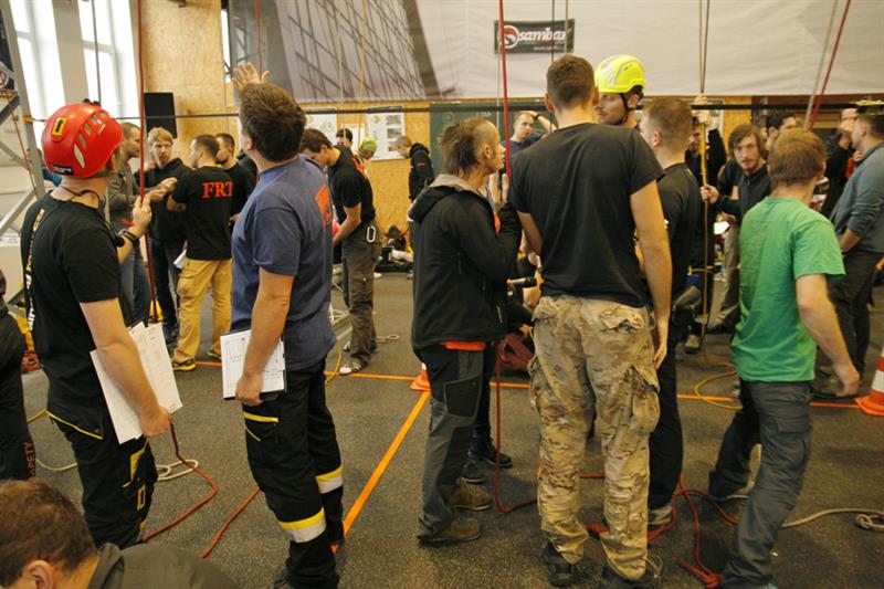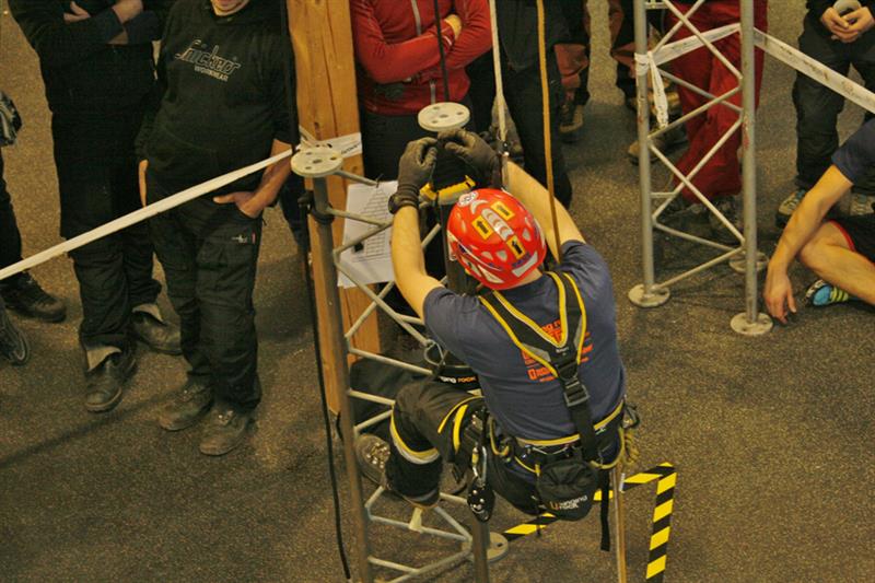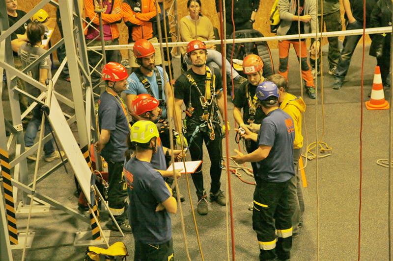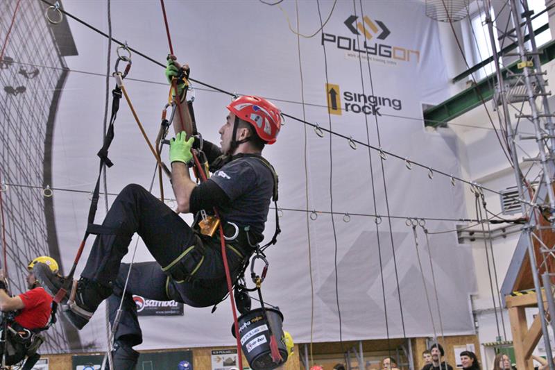 The competition has two parts, the first day started on Saturday morning with introducing and explaining the tasks for an individual race. The competitors never know in advance what they will compete in and the tasks are different every year. Same as in real life, it is not only about using in advance learnt and thought through techniques but also about being able to think and find solution to challenges and often also try something which the competitor wouldn’t come across in their day to day job. This year the tasks tested the competitor’s ability to tie various knots, speed climb or do a detailed work at height. Every contestant went through each task on their own and collected points awarded for completing them.