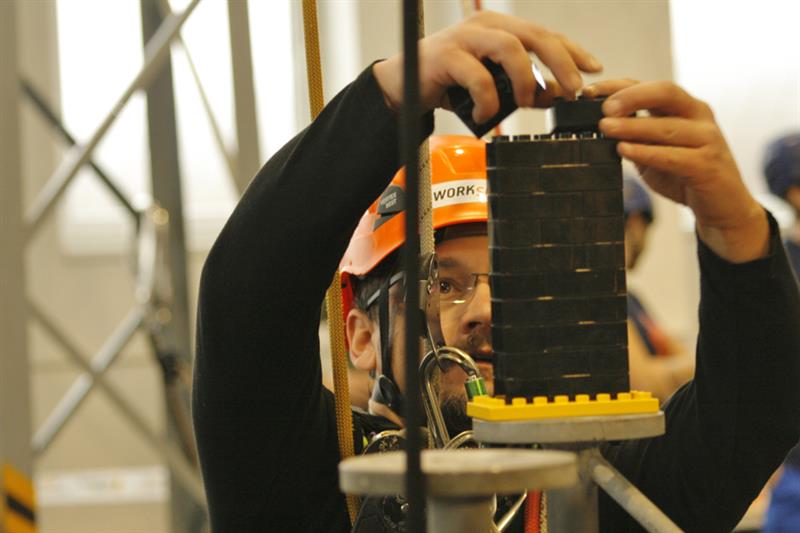 The task here was to lift a lattice structure and place it in between of the hanging ones and assemble it here with bolts, and then again disassembly it and place back to the start. The teams had to finish the task in as short time as possible or to collect as many points within the time limit.