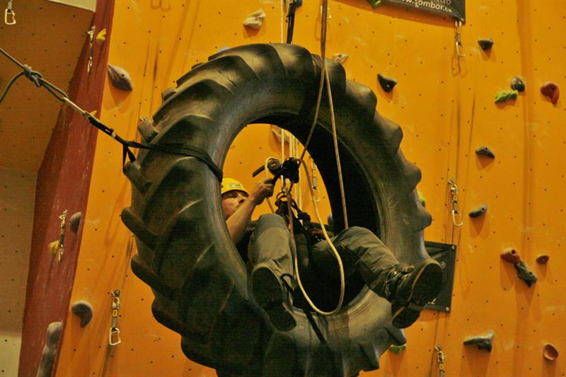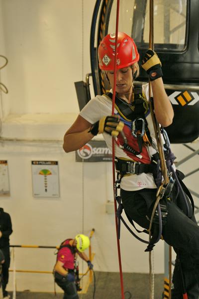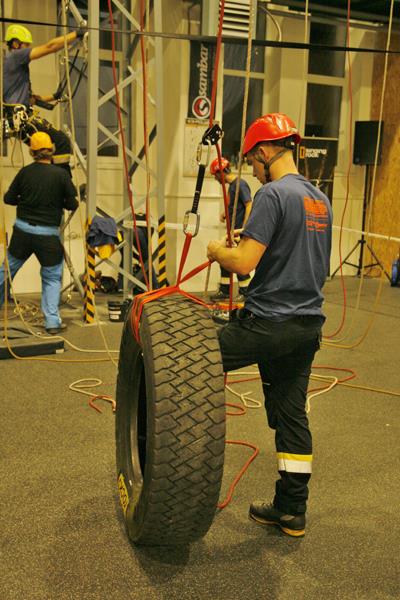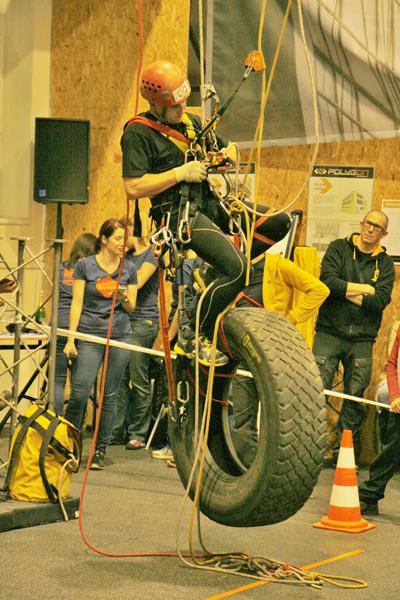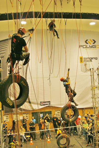 The third task, The Pole, was to firstly place a rope on a pole by throwing it on it and using the pull-through method use it as a rope for ascending. This challenge tested also the physical strength of contestants with the ascend to a height of 17 metres. During the descend competitors had to go through an obstacle (tyre).