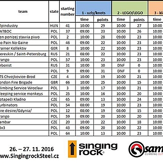 In the team competition it was a really tight fight and every little fault mattered. The best team was Polish Team No Name (Tomasz Nowak, Pawel Bochenek, Radoslaw Michalak), second was Czech team Sambar from Kladno (Vojta Kraydl, Roman Krtek Hóta, Jan Bůček Štilip) and the third place belonged to the German team Trainer Kollektiv (Sven Drangeid, Birte Kahlbrock, Nils Henneken).