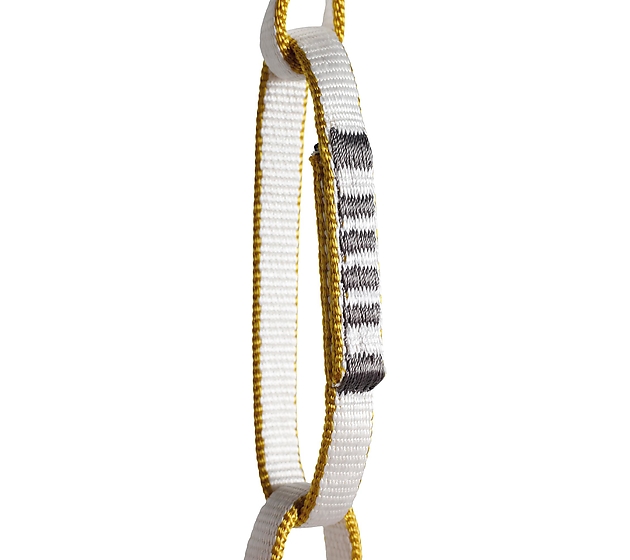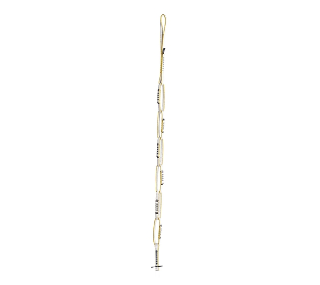Innovated daisy chain for aid climbing, rock and multi-pitch climbing. Thanks to its design it eliminates the risks of a classic daisy chain.