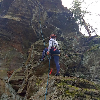 I enjoy climbing that I can cross my boundaries. For me, climbing means a pleasant day spent with my friends in a nature.