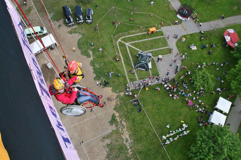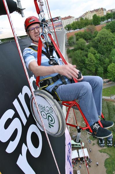 127656SINGING ROCK traditionally supported the "Pojď dál" beneficent festival which was held on 13th May 2017 in Prague, Czech Republic. Also this time we arranged abseiling of Nusle Bridge on wheelchair (as well as without it). As in previous years the aim of the festival was to support the Jedlička Institute and Schools for physically disabled young people in Prague. Have a look at some pics from abseiling in the gallery below.