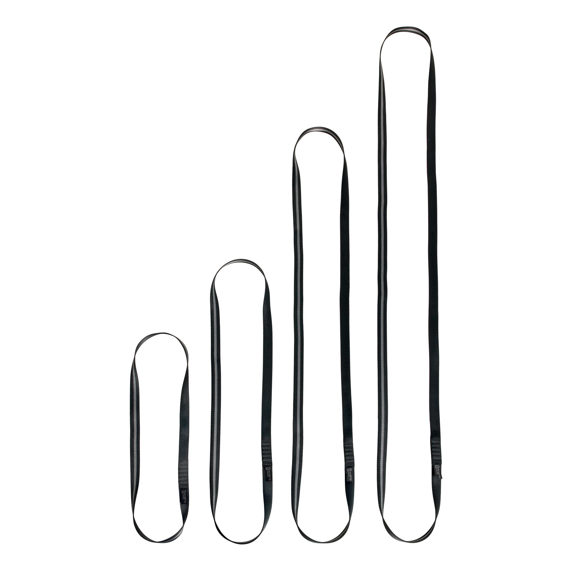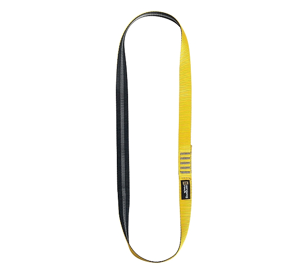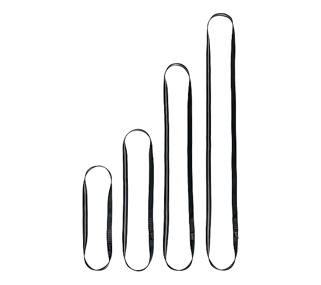• webbing used to produce the slings is color-split: one side is colored and the other side is black with five contrasting stripes symbolizing the minimum webbing strength of 25 kN