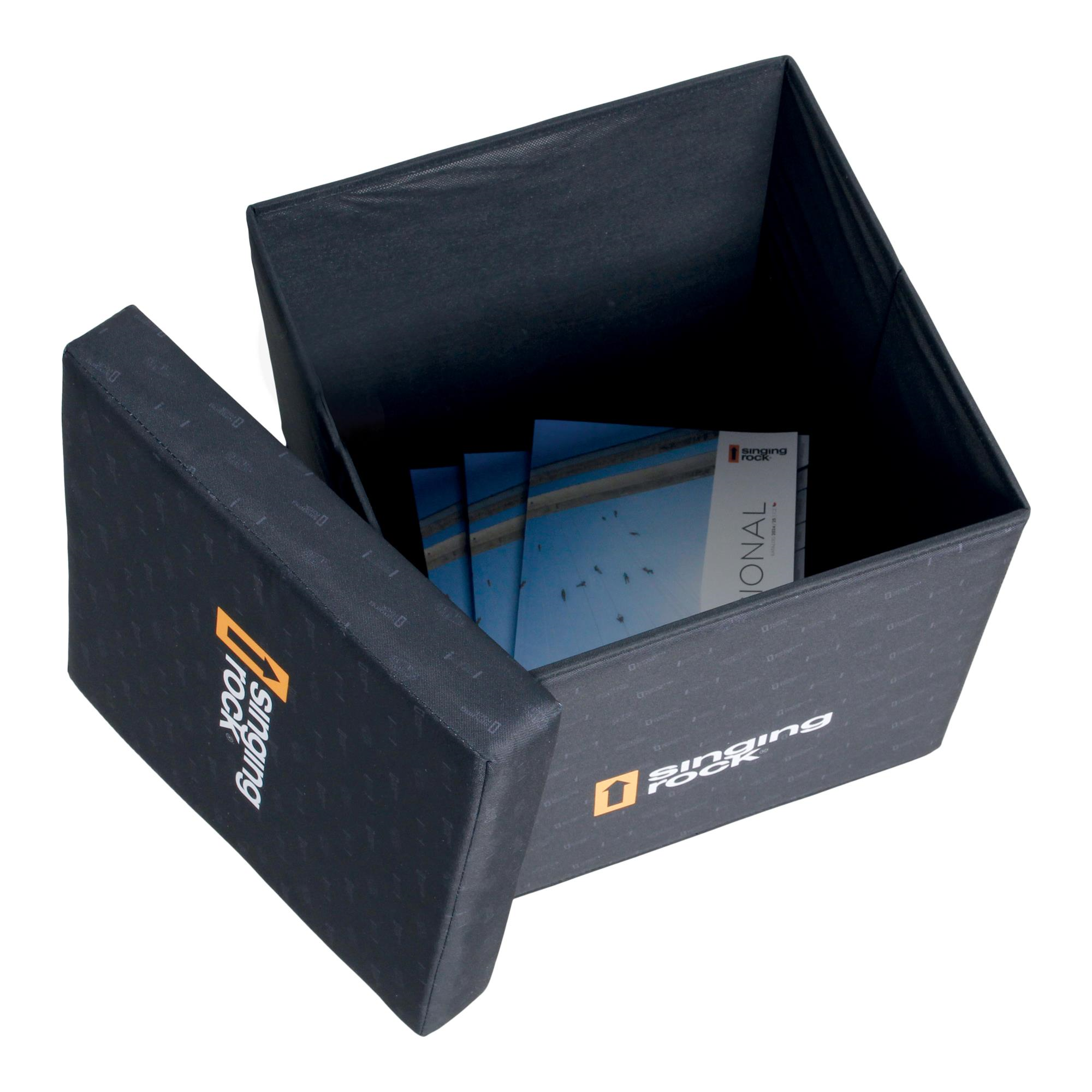 The ORIGAMI cubes can be used for seating or as a table at stores, promotional events or trade fairs. They can be easily folded for transport and take up no space. The cubes also offer storage space for marketing materials, gifts or other items.