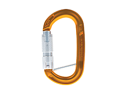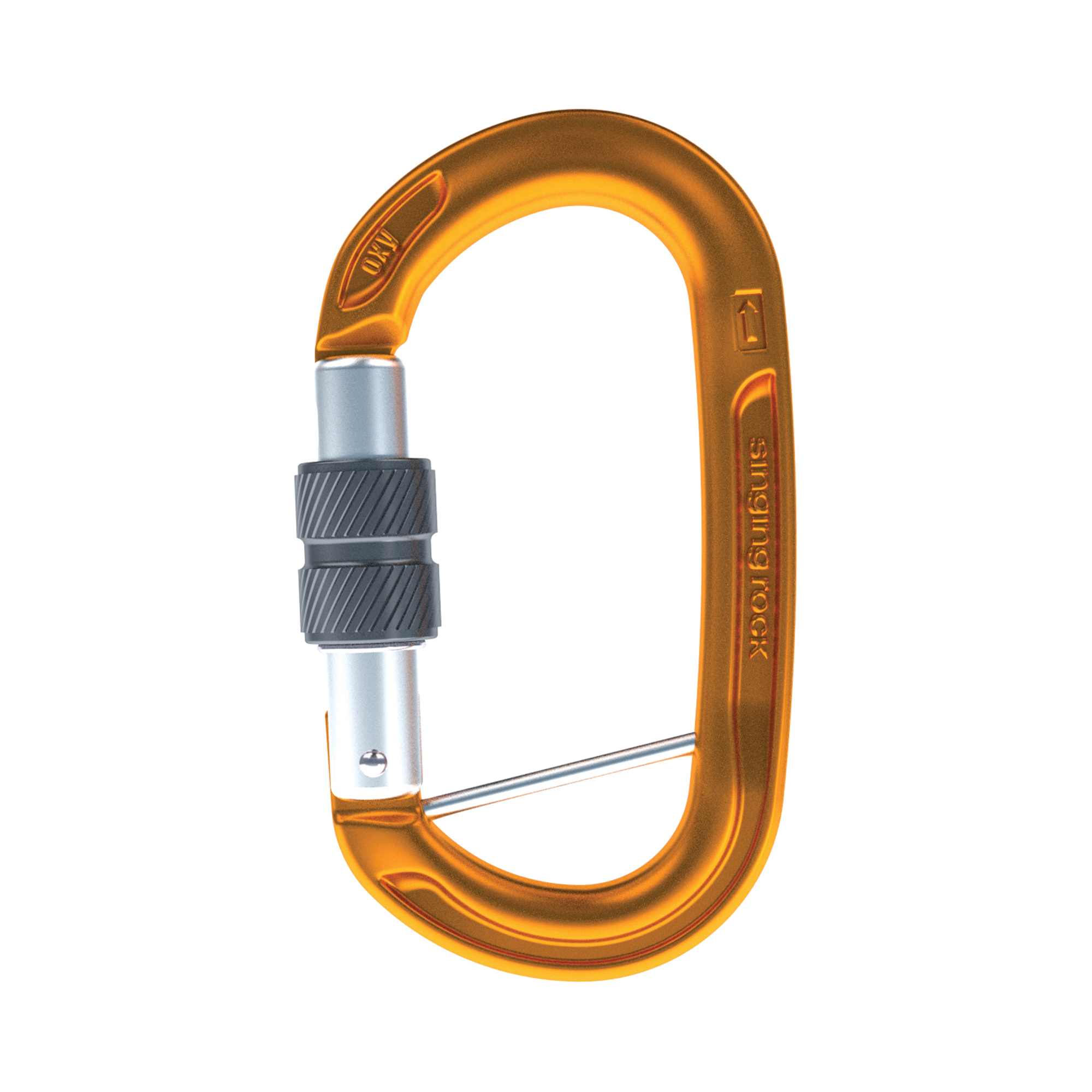 Hot-forged light alloy oval carabiner with a removable captive bar.