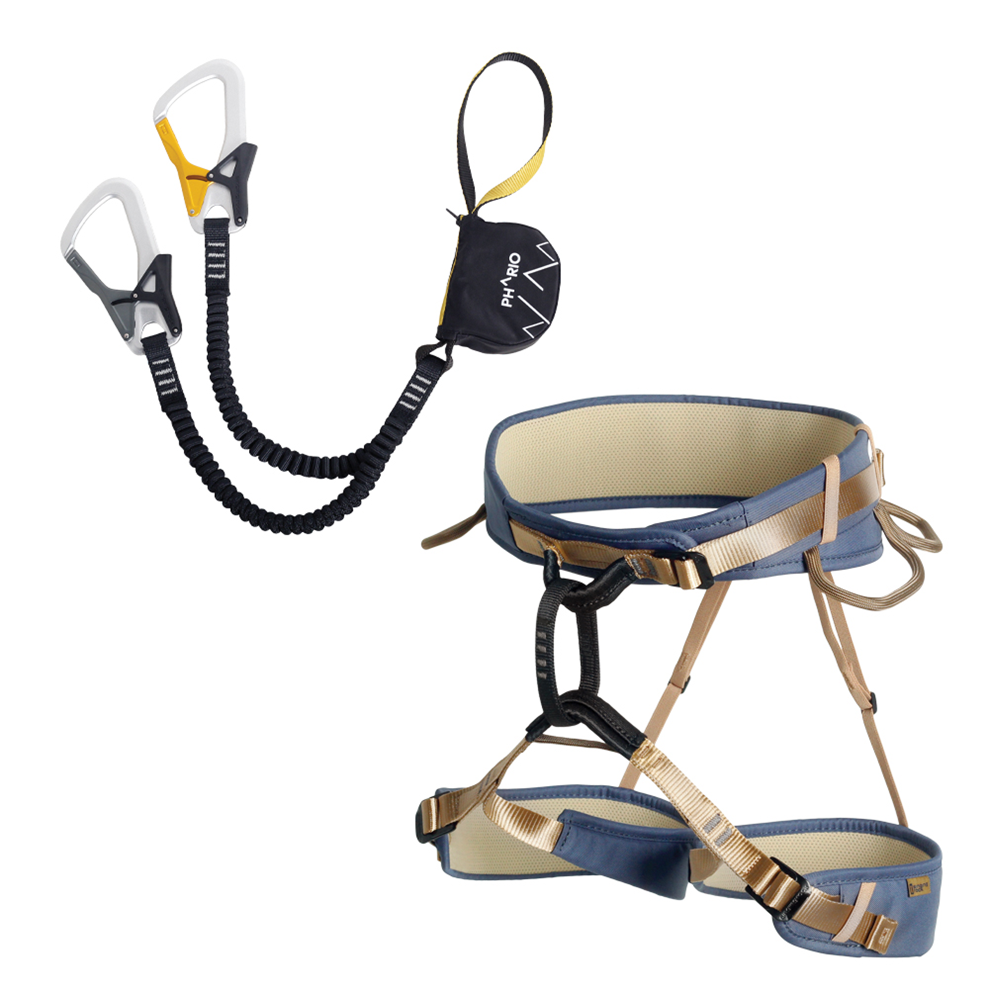 • PHARIO PALM energy absorber with palm Keylock carabiners, elastic lanyards and a fall indicator