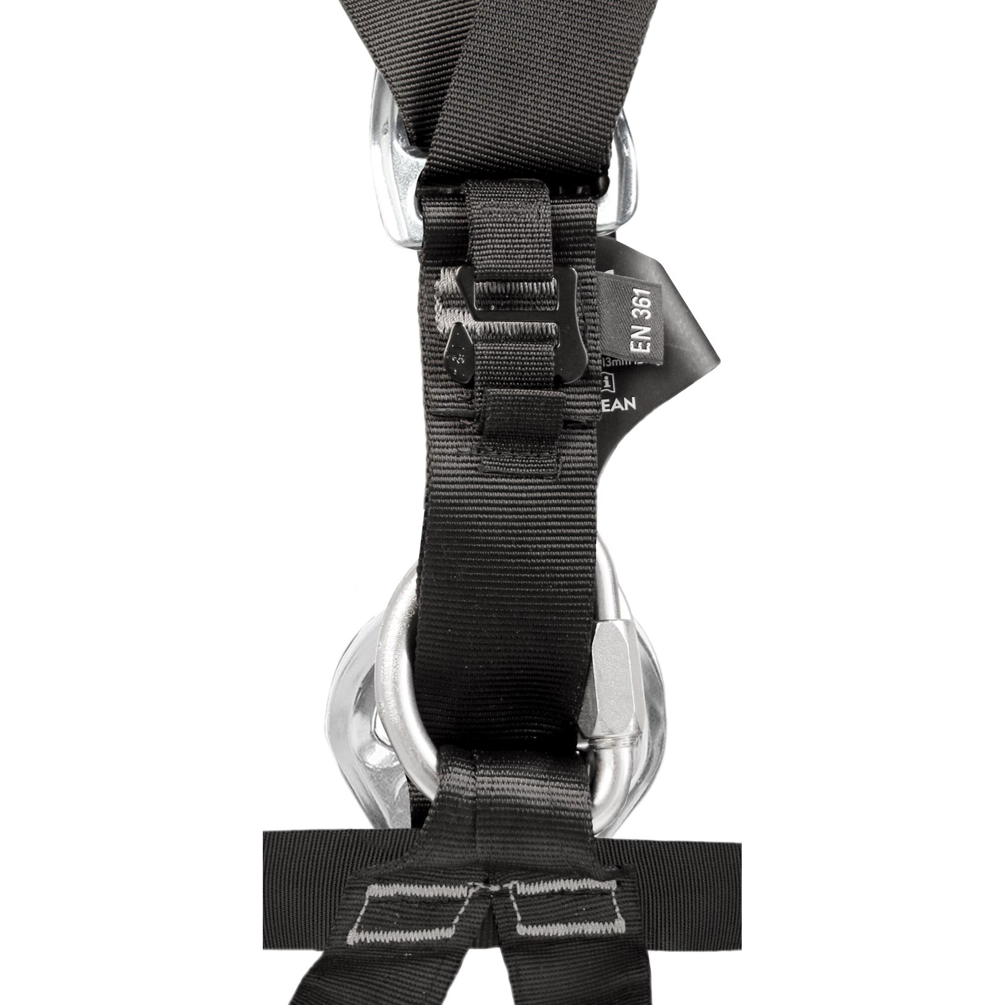• anatomic leg loops and waist belt are covered with a strong PES fabric providing high abrasion resistance