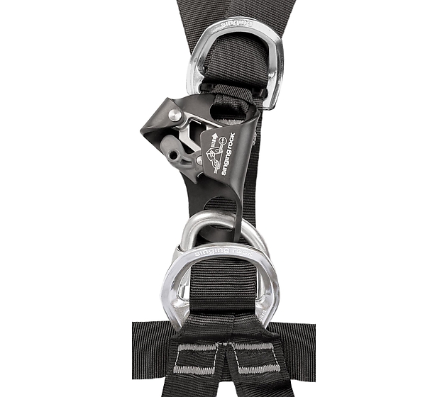 • front lower attachment point for descender placement or work positioning according to EN 813
