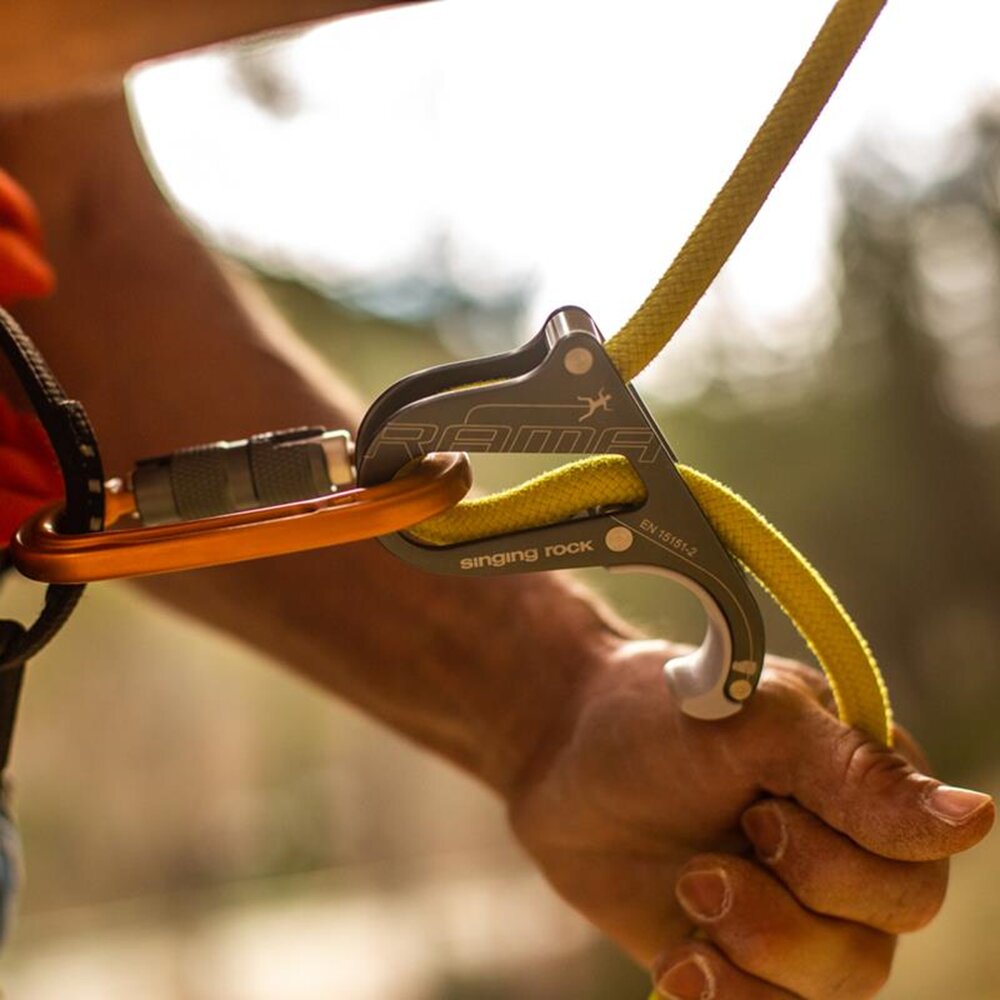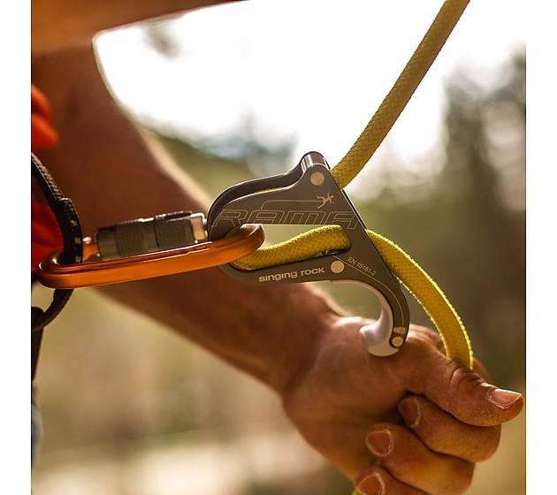 Intuitive RAMA belay device with an enhanced braking feature and oval OXY carabiner with the grey twist gate lock. Ideal set for gym or single pitch sport climbing.
