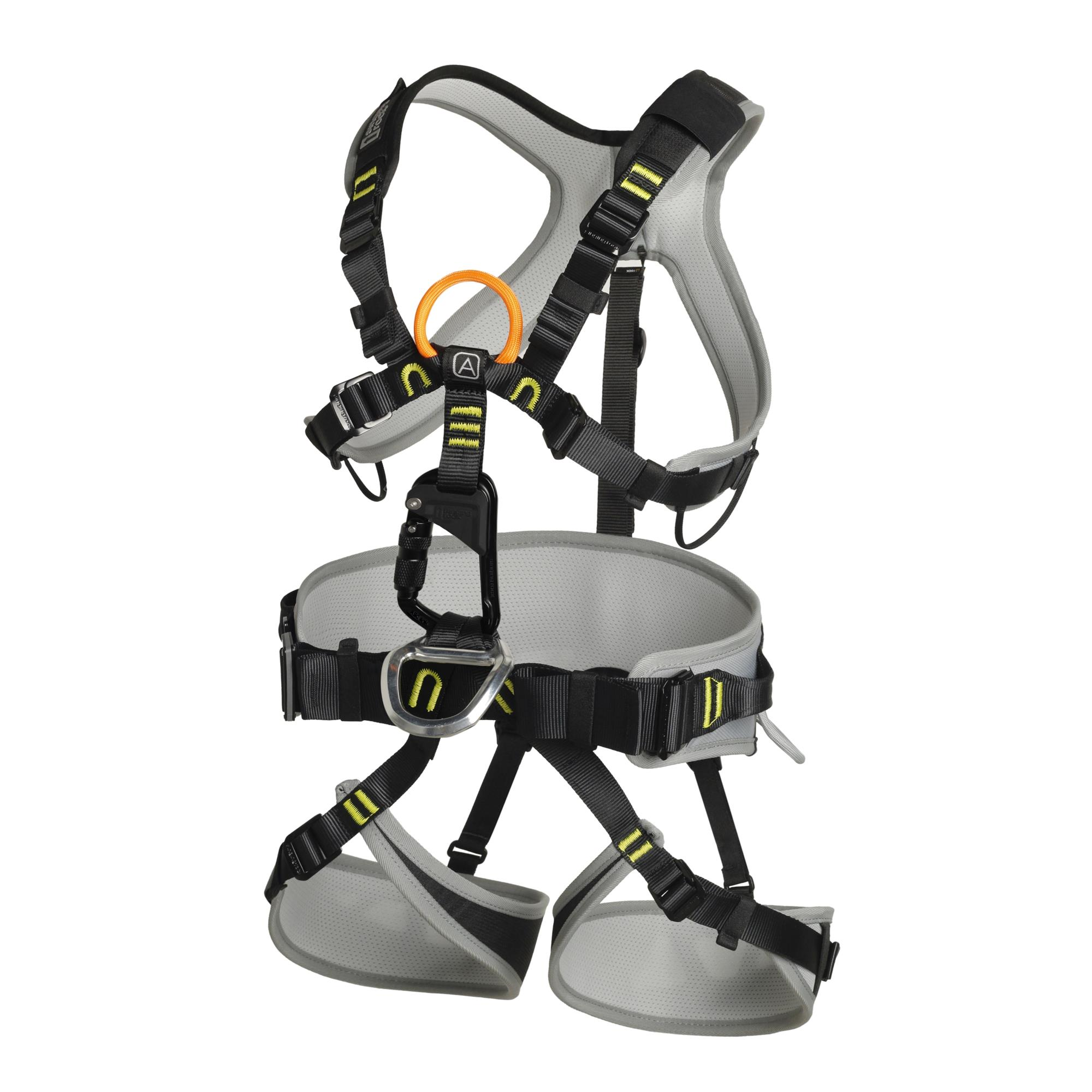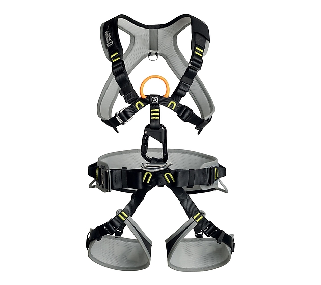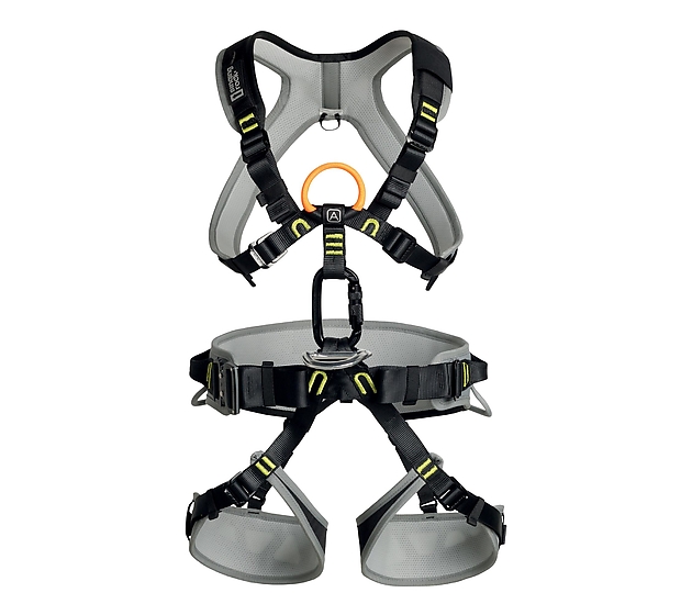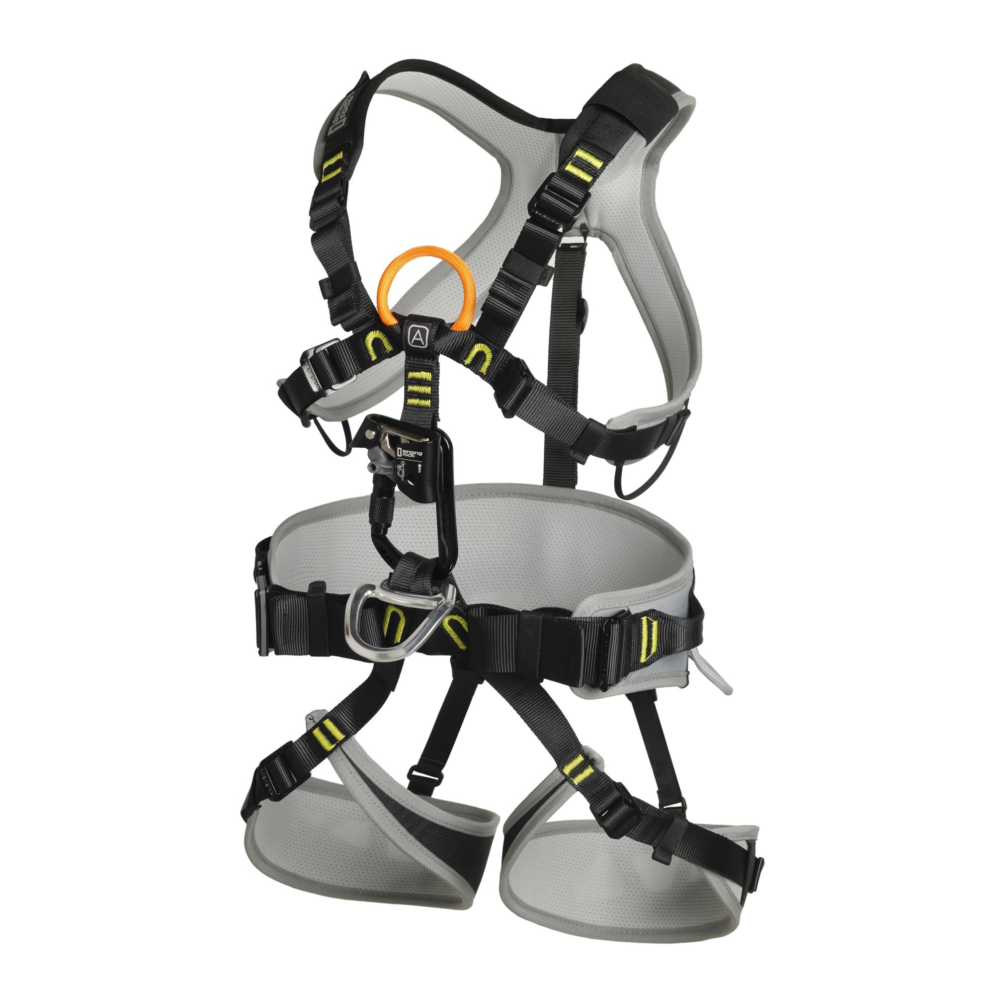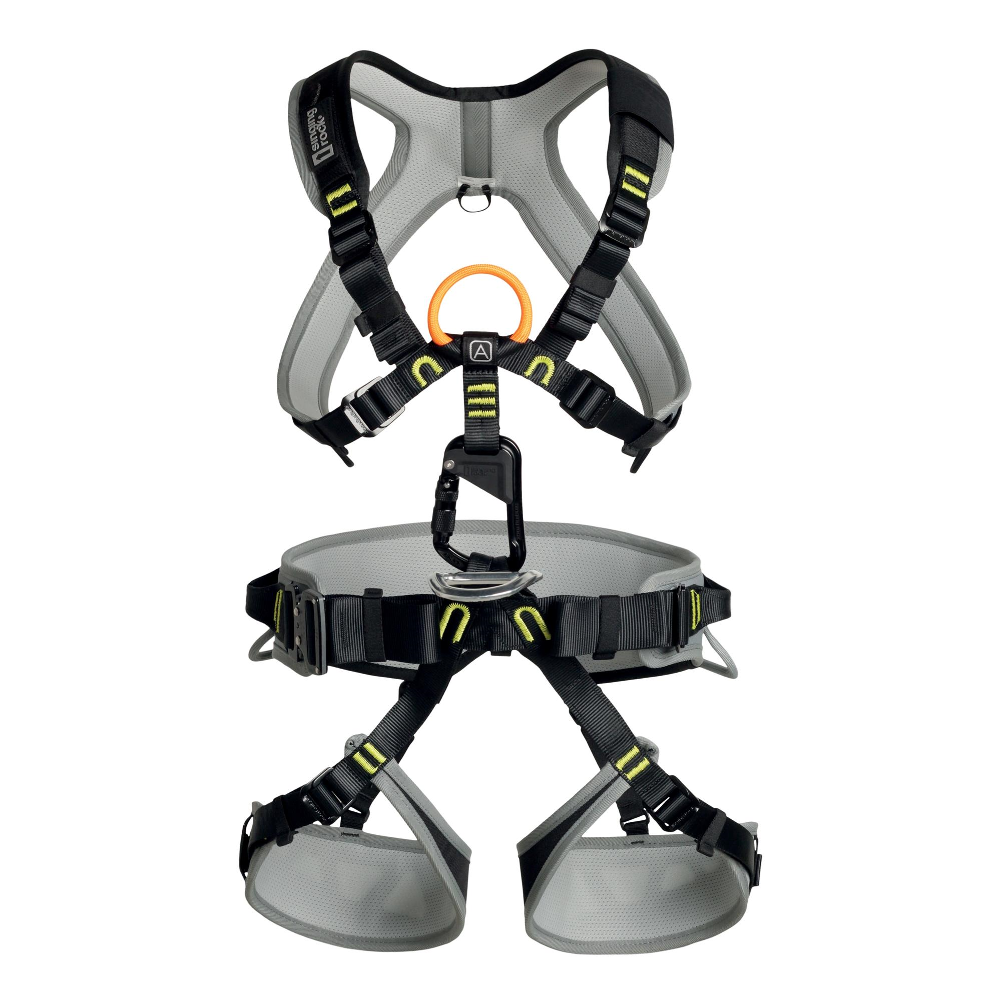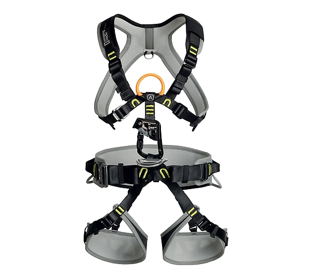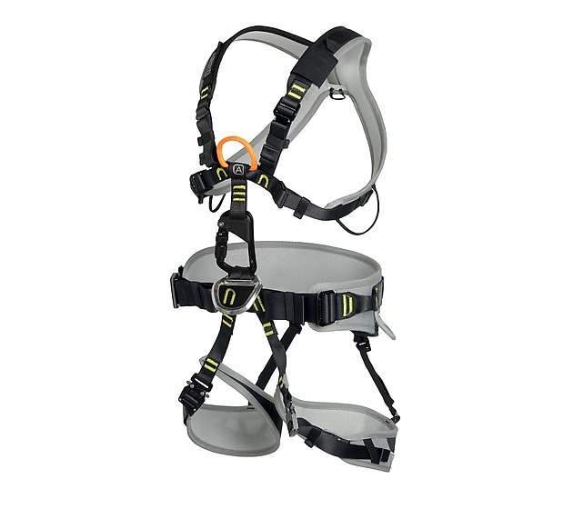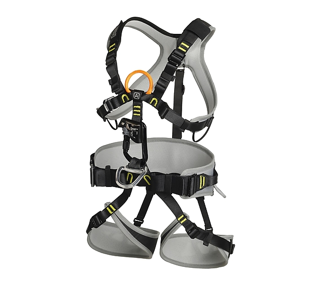 Harness for rescuers with comfortable, lightweight and breathable padding, designed for easy movement on the ground and efficient work at height. The chest part can be detached and the sit harness can be used separately if needed. The carabiner connecting the chest and sit parts allows easy integration of a chest ascender. RESCUE MASTER provides maximum reliability and versatility for rescuers operating in climbing, exposed or otherwise inaccessible terrain, using rope techniques, rappelling from helicopters or flying suspended underneath.