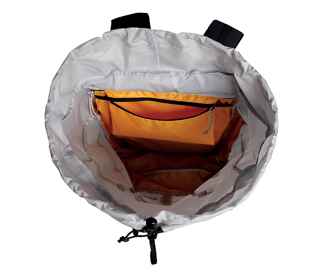 • conical shape of the pack ensures that it won't get in the way of your access to the gear on the harness or the chalk bag when climbing