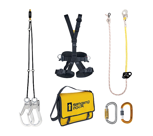 Set intended for those who install scaffolds or work on tall structures and towers. It allows you to reach safely a place of work and position there for work.