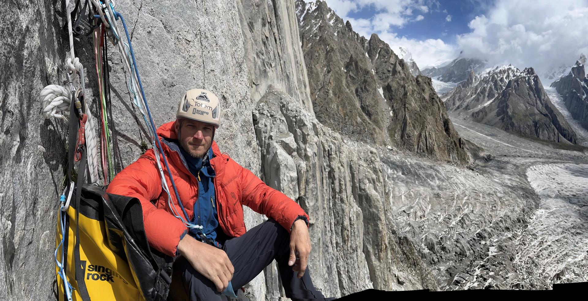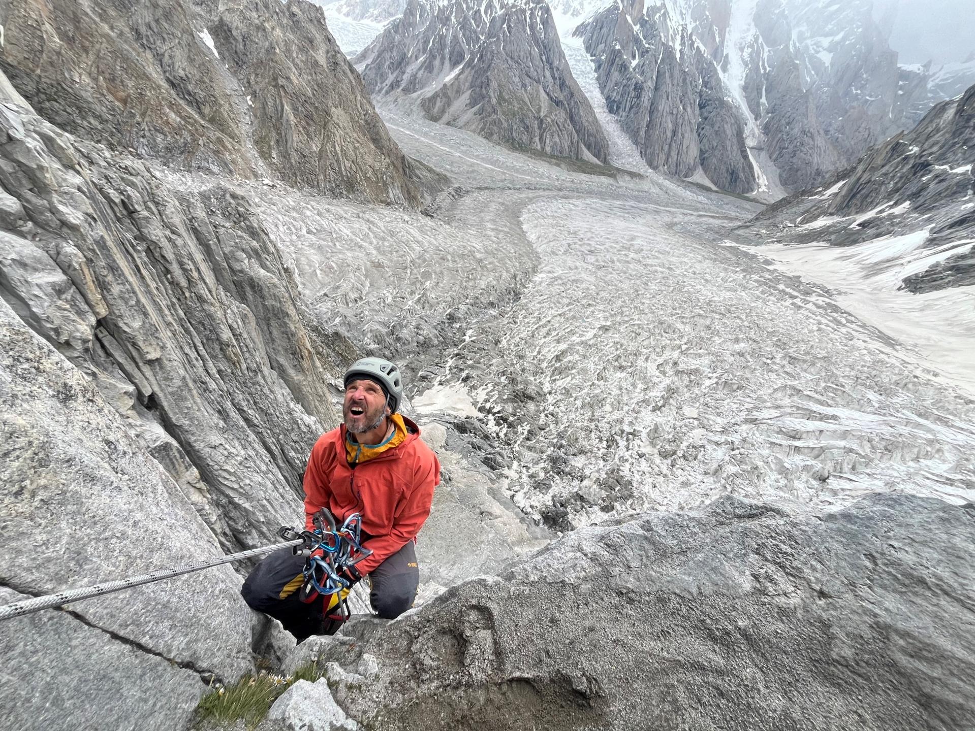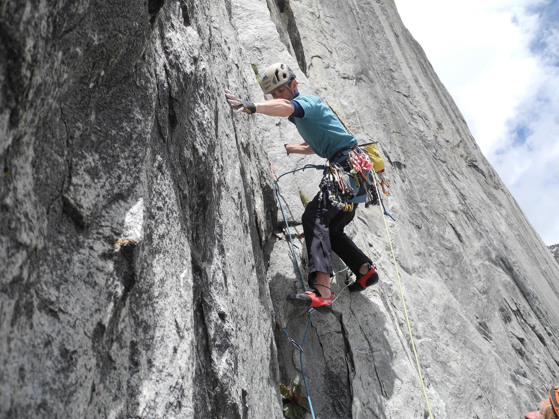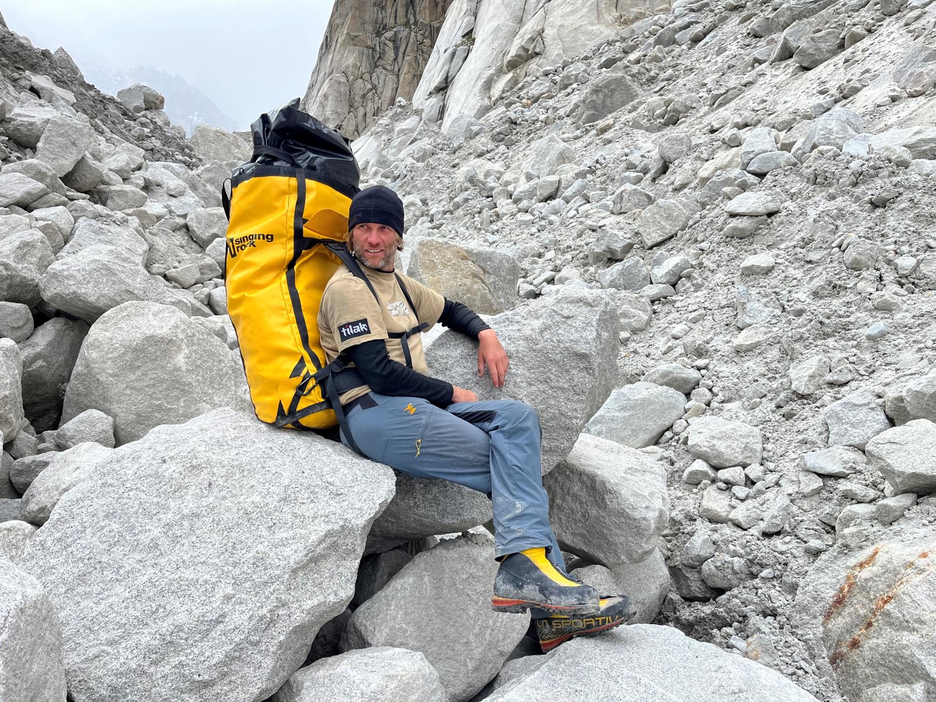 Later, when he sent me a photo of our planned wall, the eastern face of Shipton Spire, I was thrilled.. A perfect granite obelisk. My confidence wavered, though, when I saw the second image - the topo of the Women and Chalk route. The first 8a above 5000m, one of the most challenging multipitch routes in the world at the time of its first ascent in 2001. Over 1000m of rock where the difficulty rarely drops below 7a. The Italian team, led by Mauro Bollé, took a direct line straight up the wall to the summit ridge, from where they rappelled after 20 days. The route was repeated in 2006. The Austrian team, led by Hansjörg Auer, fought their way up the ridge and followed the Ship of Fools route for 8 more lengths to the summit. Since then, nothing.