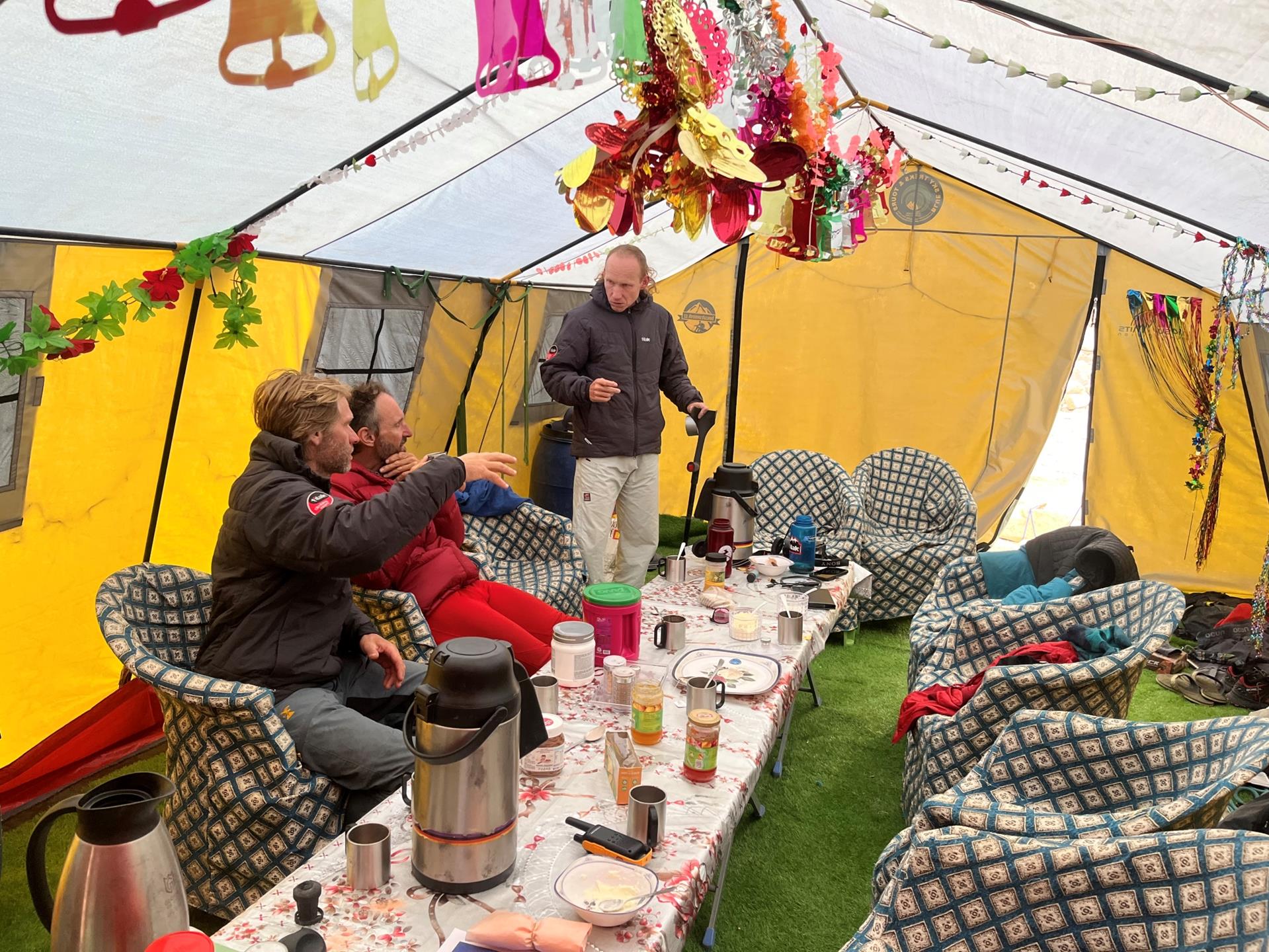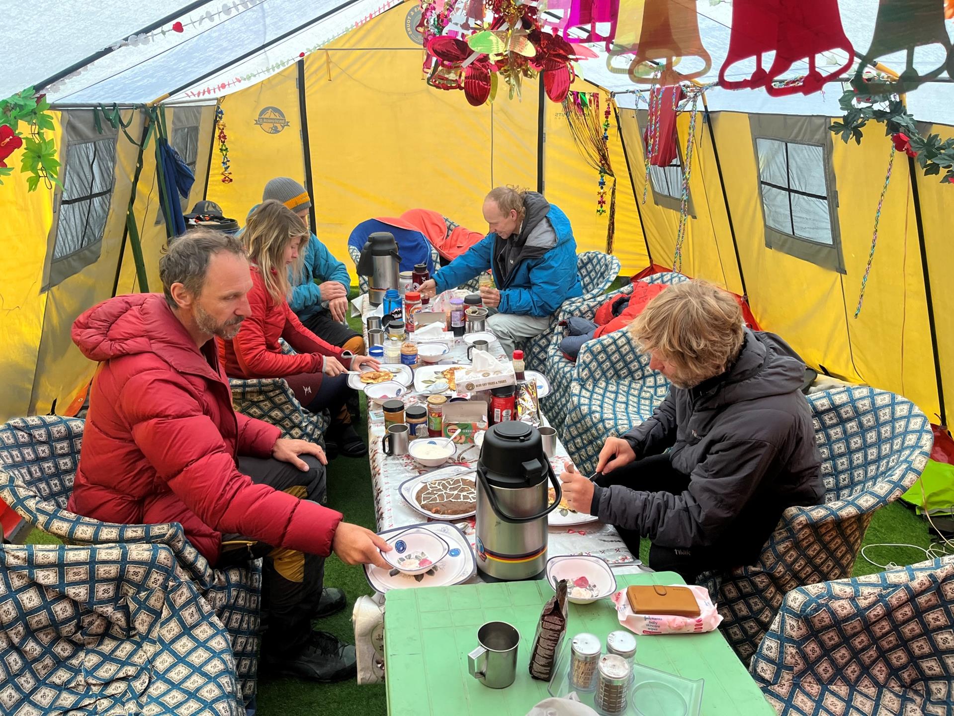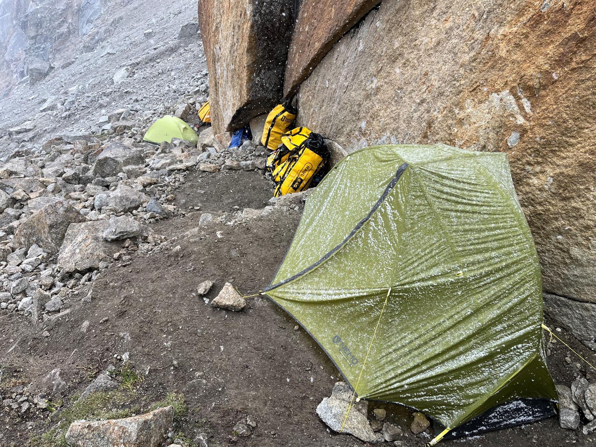 July 12: Morning brought snow everywhere. A forced rest day. A drone flew by, giving us a rare moment of contact with the outside world. Pavel Nesvadba radioed in with a weather update - not great, still unstable. If it keeps snowing, at least we won’t get rained on.