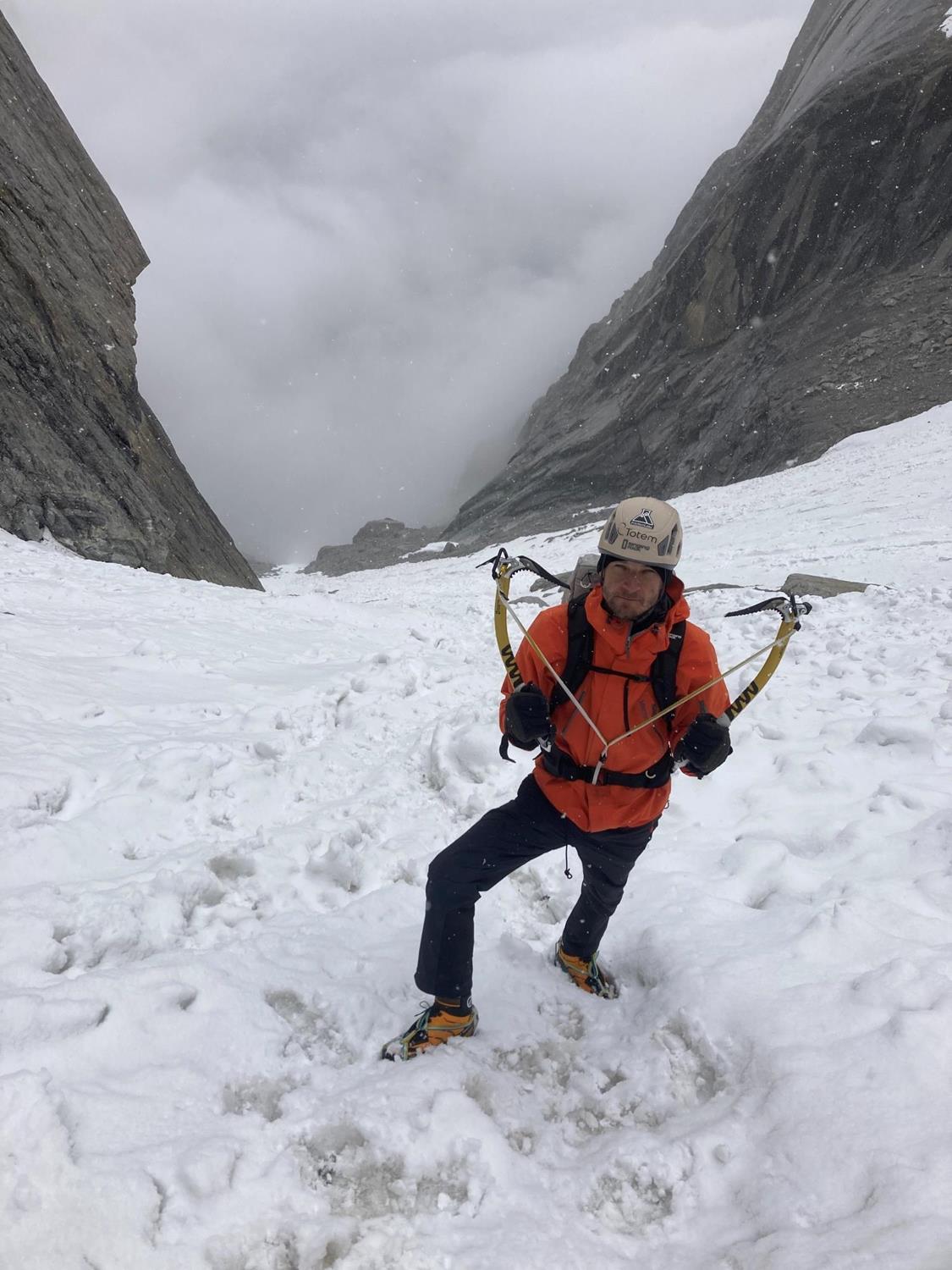 Šatavis was uncompromising. No plan B, we're just focusing on Shipton. We will free climb, no aid climbing allowed. Lumír Fajkoš from Singing Rock joined us, securing a strong lead team. I assigned myself the role of climbing the wet chimneys and wide cracks to safe the others' energy for the crux pitches.